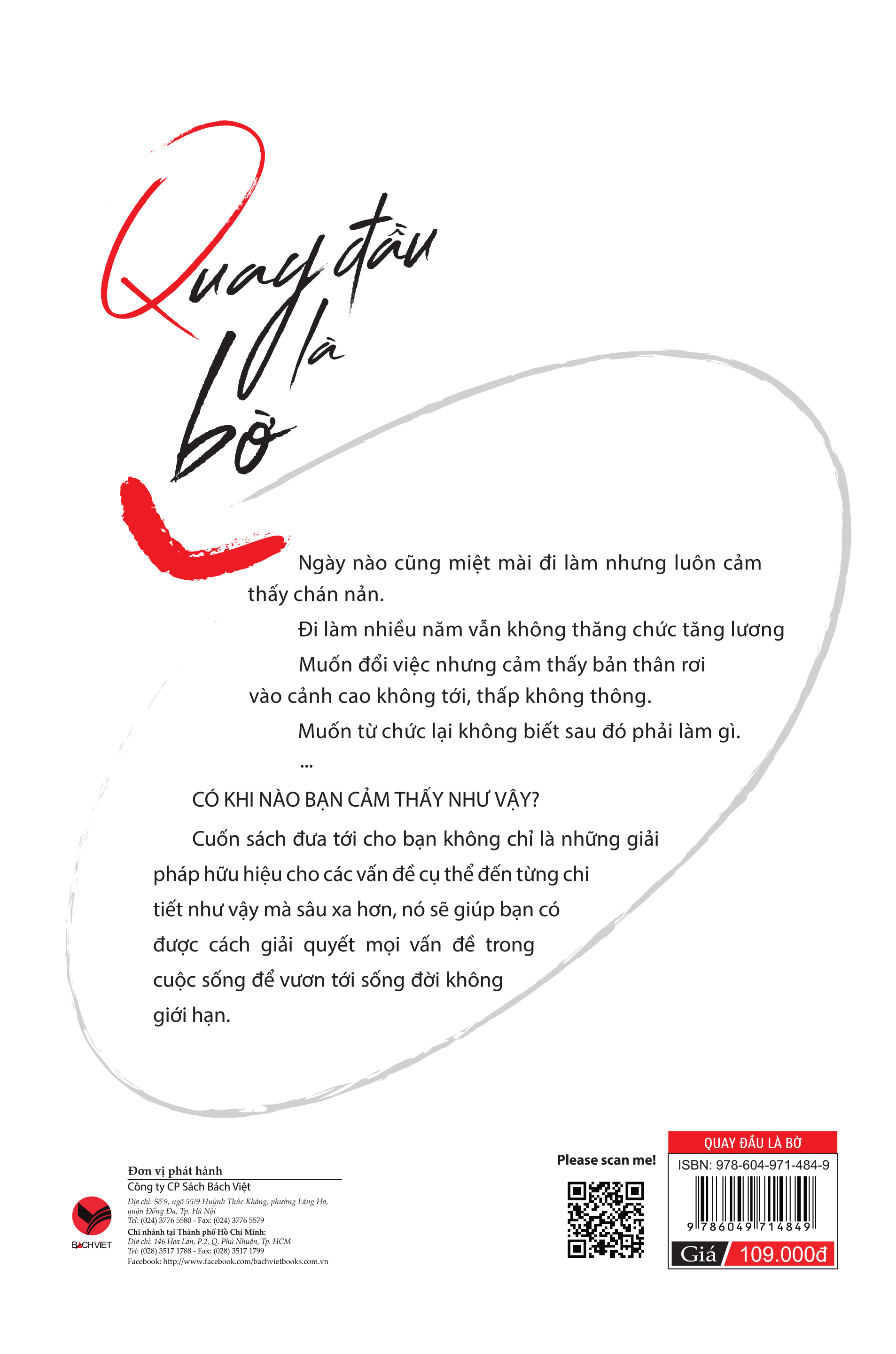 Cuốn sách “Quay đầu là bờ” sẽ trao tặng bạn không chỉ những giải pháp hữu hiệu cho các vấn đề cụ thể đến từng chi tiếtmàcòn giúp bạn có được cách giải quyết mọi vấn đề trong cuộc sống để vươn tới sống đời không giới hạn.