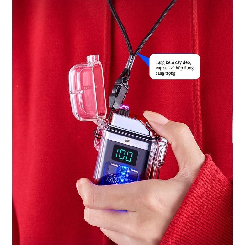 ✨Quẹt Sạc Điện Plasma Chống Nước, Chống Gió, Vỏ Trong Suốt, Có màn hình hiển thị pin