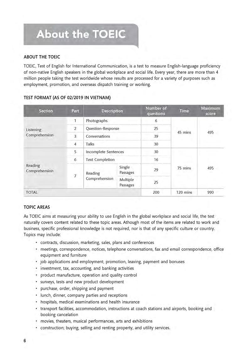 It is our strong belief that this preparation book will assist you in developing the most effective strategies for you to conquer the TOEIC test and achieve your target score.
