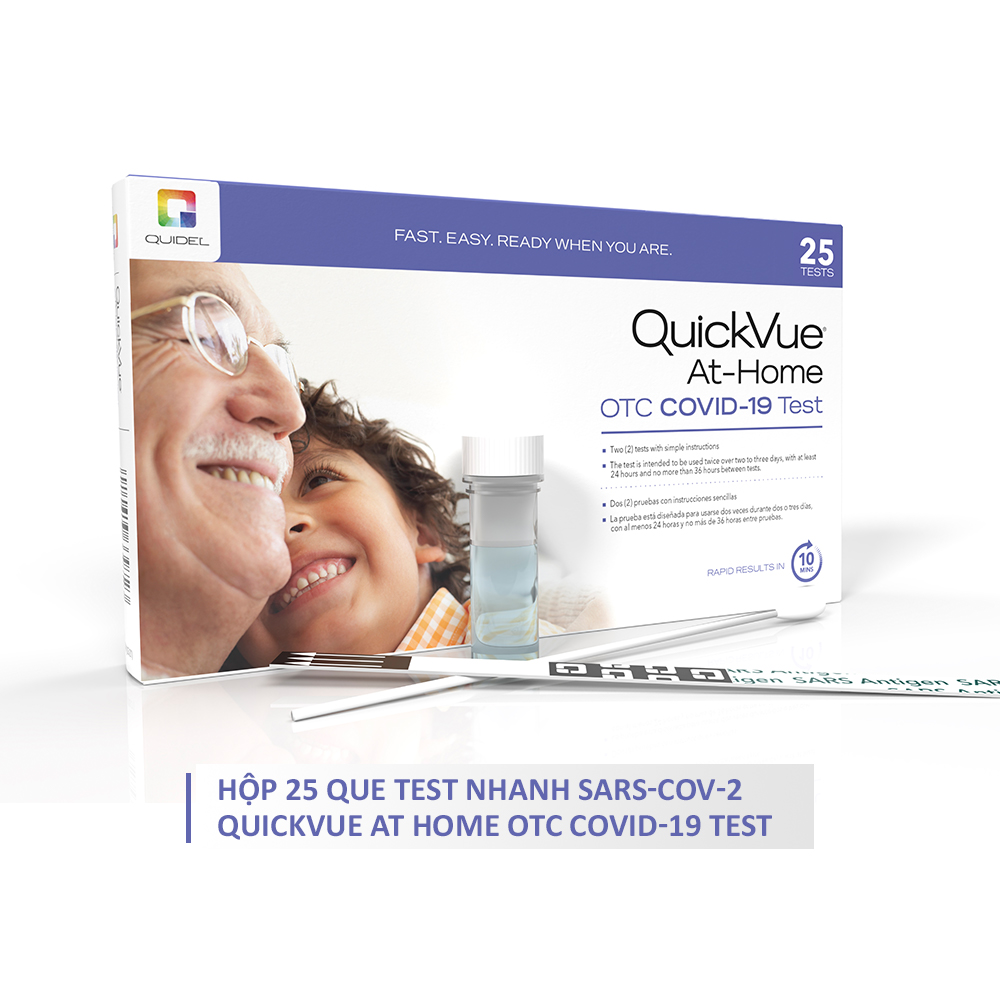 - QuickVue At-Home OTC COVID-19 Test được sử dụng để xét nghiệm định tính kháng nguyên protein nucleocapsid từ SARS-CoV-2 trong mẫu dịch mũi