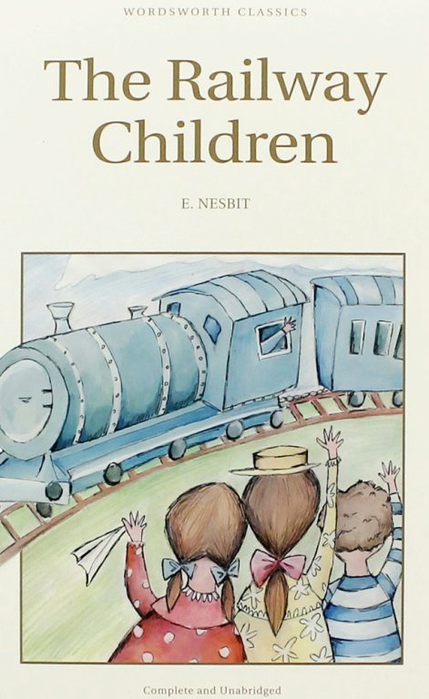 The Railway Children by Edith Nesbit. When Father goes away with two strangers one evening, the lives of Roberta, Peter and Phyllis are shattered. They and their mother have to move from their comfortable London home to go and live in a simple country cottage, where Mother writes books to make ends meet. However, they soon come to love the railway that runs near their cottage, and they make a habit of waving to the Old Gentleman who rides on it. They befriend the porter, Perks, and through him learn railway lore and much else. They have many adventures, and when they save a train from disaster, they are helped by the Old Gentleman to solve the mystery of their father's disappearance, and the family is happily reunited.
