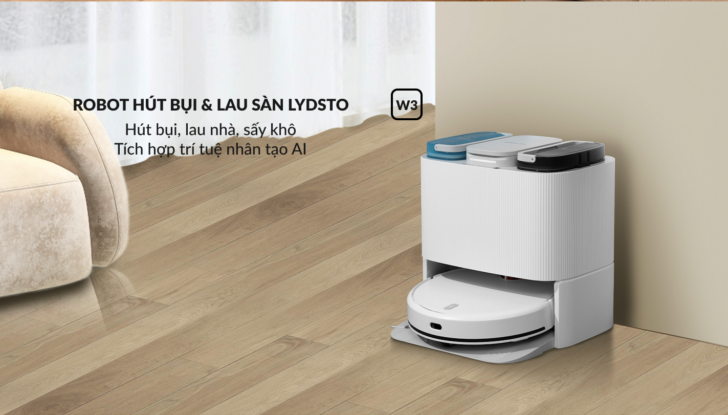 Robot hút bụi lau nhà tự động Lydsto W3 - TrắngLydsto được ra mắt vào năm 2020 với khẩu hiệu "Start Better With Healthy, Start Healthy With Lydsto".Các công ty trực thuộc Hệ sinh thái Xiaomi chuyên s...