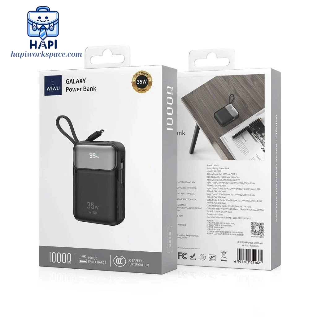 Công suất tối đa 35W có thể dễ dàng cân được nhiều thiết bị di động phổ biến, có thể sạc tương đối ổn cho 2 thiết bị cùng lúc. Thậm chí ở một số trường hợp, pin dự phòng Wiwu Galaxy còn có thể cung cấp năng lượng tạm thời cho các dòng laptop Ultra Book với công suất sạc không quá cao (65W trở xuống).