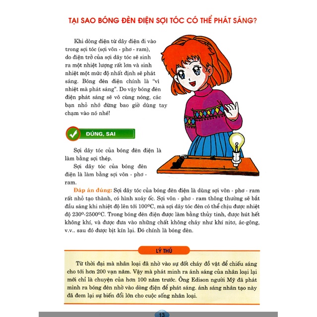 Các câu hỏi sẽ giúp các bạn tìm hiểu được vô số điều bổ ích từ thế giới muôn màu: Tại sao bóng đèn điện lại có thể phát sáng? Voi có phải là động vật lớn nhất không? Trai di chuyển như thế nào? Lợn có ngu không? Vì sao cá chuồn biết bay?