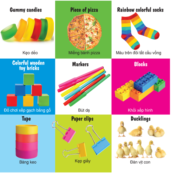 Điểm cộng của bộ sách này còn là yếu tố song ngữ Anh - Việt hấp dẫn, giới thiệu những từ vựng, hình ảnh, kiến thức cơ bản, gần gũi đầu tiên dành cho bé.