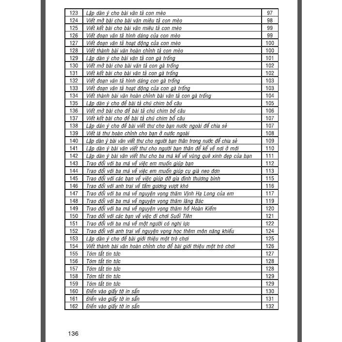 Mua tại TiktokSÁCH - 162 bài tập làm văn chọn lọc 4 (dùng chung cho các bộ sgk hiện hành) Môn văn đối với các em học sinh luôn là một bộ môn khá "khó nuốt" vì thật sự để có thể viết được một bài văn hay đòi hỏi các em có một vốn từ vựng phong phú và khả năng sử dụng, kết hợp nhuần nhuyễn ngữ pháp. Vì vậy, để giúp các em cải thiện được kĩ năng làm tập làm văn, xin giới thiệu đến quý phụ huynh và các em cuốn 162 Bài Tập Làm Văn Chọn Lọc 4.Với 162 bài tập làm văn được chọn lọc và sưu tầm dựa theo chương trình dành cho học sinh lớp 4, các em sẽ dễ dàng tìm đọc được những bài văn hay, tham khảo được cách viết và kĩ năng dùng từ cũng như cách phân tích đề để làm một bài văn. Bên cạnh những đề văn quen thuộc mà các em đã được làm trên lớp, 162 Bài Tập Làm Văn Chọn Lọc 4 còn bổ sung rất nhiều những đề văn lạ và hay nhằm giúp các em mở rộng được ý tưởng cũng như có cơ hội cọ xát được với nhiều cách ra đề khác nhau, làm tài liệu tham khảo trong quá trình học cũng như khi thi cử.