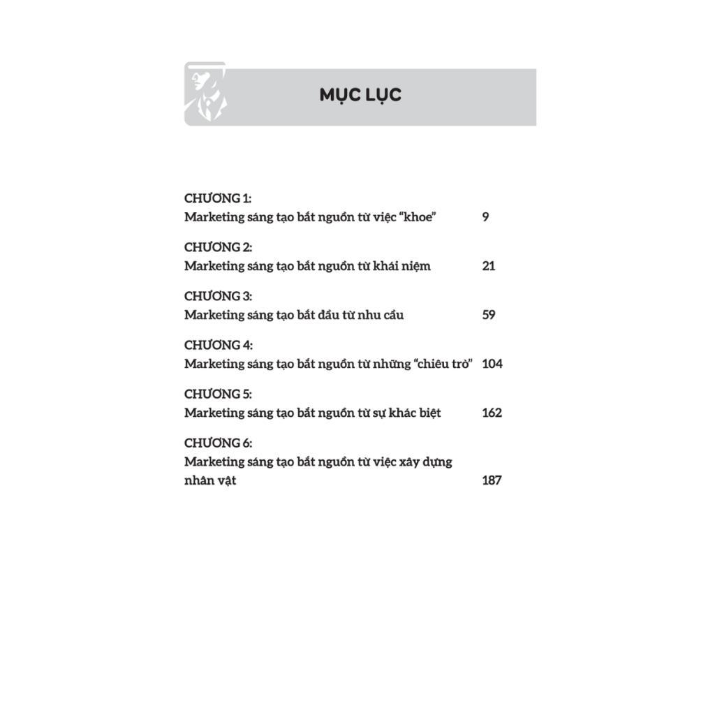 Để giúp người đọc tiết kiệm thời gian quý báu và làm chủ tốt hơn các kỹ thuật sáng tạo, cuốn sách được chia thành 11 chương với tổng số 168 loại phương pháp, cho phép người đọc có thể học trong 168 ngày. Bằng cách đọc các “ví dụ” và “phân tích phương pháp” một cách thoải mái mỗi ngày. Người đọc sẽ có thể hiểu sâu hơn về từng phương pháp marketing sáng tạo, từ đó giúp mỗi người thành công trong việc tạo ra ý tưởng marketing sáng tạo.