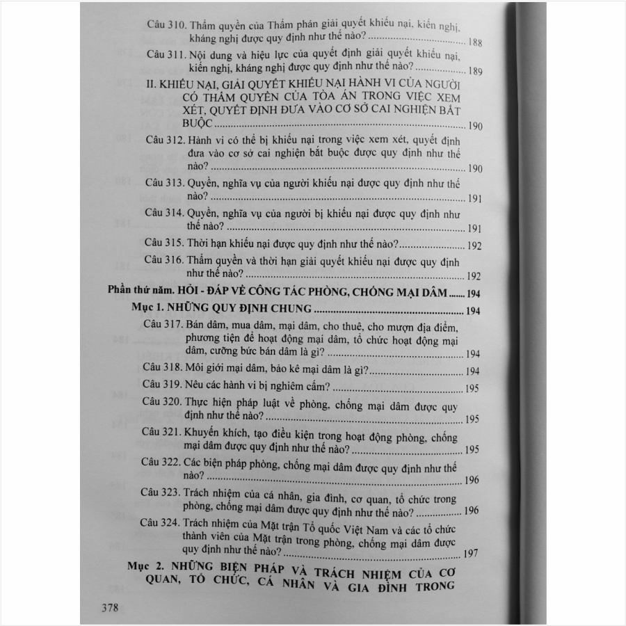 - Toàn bộ sách bìa mềm khổ lớn 19 x 27 cm phân phối bởi Nhà sách Nam Việt đều được bọc sách Plastic MIỄN PHÍ và xuất hóa đơn điện tử đầy đủ, nhanh chóng. …//… Sự phát triển nhanh chóng của cuộc cách mạng công nghiệp tạo ra những thuận lợi, song cũng đặt ra nhiều thách thức về an ninh, lợi ích của các quốc gia, trong đó có Việt Nam. Trước tình hình tội phạm và vi phạm pháp luật có diễn biến phức tạp, để bảo vệ, chăm sóc, giáo dục thế hệ trẻ, xây dựng và bảo đảm cho người học được sinh sống, học tập và rèn luyện trong môi trường giáo dục an toàn, lành mạnh, thân thiện, Đảng, Nhà nước đã luôn quan tâm chỉ đạo. Từ đó, mỗi cá nhân, tập thể kiên quyết phòng, chống và ngăn chặn không để tội phạm và vi phạm pháp luật xâm nhập vào trường học. Nhằm góp phần tuyên truyền những quy định pháp luật của Đảng, Nhà nước giúp thầy cô giáo, học sinh, sinh viên và những người quan tâm có tài liệu nghiên cứu học tập. Nhà sách Nam Việt xin trân trọng giới thiệu cuốn sách: 375 Câu Hỏi Đáp Về Phòng Chống Vi Phạm Pháp Luật Thường Gặp Đối Với Trẻ Em, Học Sinh, Sinh Viên Trong Nhà Trường …//… Nội dung sách gồm 8 phần sau: Phần I. PHÒNG NGỪA TỘI PHẠM VÀ PHÒNG, CHỐNG VI PHẠM PHÁP LUẬT VÀ CƠ SỞ GIÁO DỤC ĐẠT TIÊU CHUẨN “AN TOÀN VỀ AN NINH, TRẬT TỰ” Phần II. HỎI – ĐÁP PHÁP LUẬT VỀ QUY TẮC GIAO THÔNG ĐƯỜNG BỘ VÀ PHƯƠNG TIỆN THAM GIA GIAO THÔNG ĐƯỜNG BỘ Phần III. HỎI – ĐÁP PHÁP LUẬT VỀ HÀNH VI VI PHẠM QUY TẮC GIAO THÔNG ĐƯỜNG BỘ KHI THAM GIA GIAO THÔNG Phần IV. HỎI – ĐÁP PHÁP LUẬT VỀ CÔNG TÁC KIỂM SOÁT CÁC HOẠT ĐỘNG LIÊN QUAN ĐẾN MA TUÝ QUẢN LÝ NGƯỜI SỬ DỤNG TRÁI PHÉP CHẤT MA TUÝ Phần V. HỎI – ĐÁP VỀ CÔNG TÁC PHÒNG, CHỐNG MẠI DÂM Phần VI. HỎI – ĐÁP PHÁP LUẬT VỀ PHÒNG, CHỐNG TÁC HẠI CỦA THUỐC LÀ Phần VII. TÌM HIỂU PHÁP LUẬT VỀ CHĂM SÓC, GIÁO DỤC TRẺ EM VÀ PHÒNG CHỐNG BẠO LỰC GIA ĐÌNH Phần VIII. TÌM HIỂU VỀ PHẠT VI PHẠM HÀNH CHÍNH VÀ MỨC PHẠT TRONG LĨNH VỰC AN NINH, TRẬT TỰ, AN TOÀN XÃ HỘI; PHÒNG, CHỐNG TỆ NẠN XÃ HỘI; PHÒNG CHÁY, CHỮA CHÁY; CỨU NẠN, CỨU HỘ; PHÒNG, CHỐNG BẠO LỰC GIA ĐÌNH ...//... Cảm ơn các bạn đã ghé thăm shop Nhà sách Nam Việt ! Sách 375 Câu Hỏi Đáp Về Phòng Chống Vi Phạm Pháp Luật Thường Gặp Đối Với Trẻ Em, Học Sinh, Sinh Viên Trong Nhà Trường Sách 375 Câu Hỏi Đáp Về Phòng Chống Vi Phạm Pháp Luật Thường Gặp Đối Với Trẻ Em, Học Sinh, Sinh Viên Trong Nhà Trường
