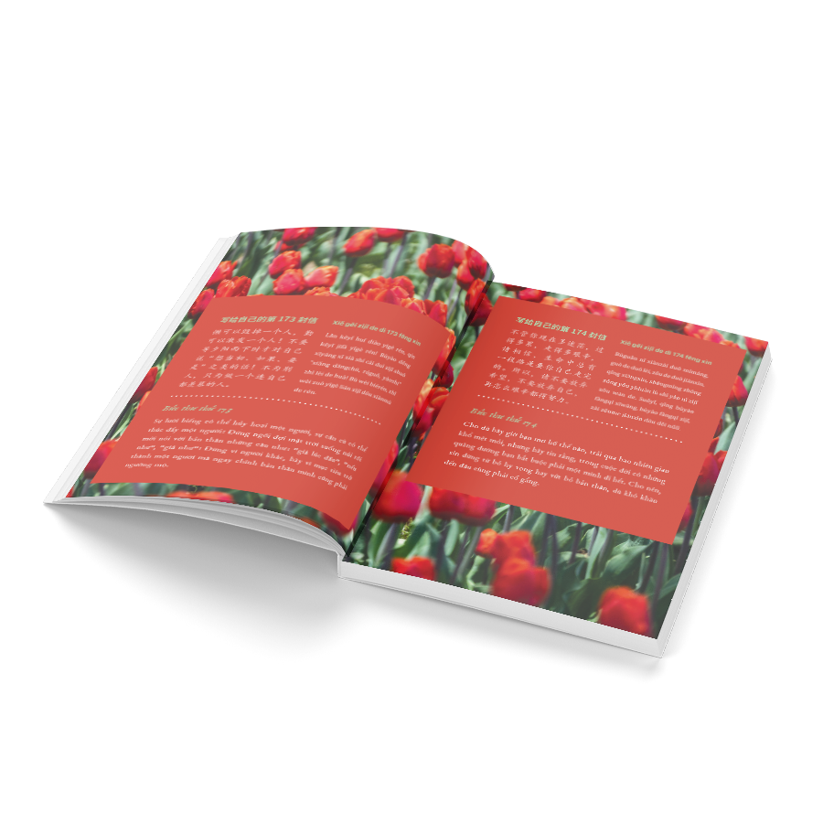Để tiếp sức cho bạn trước hành trình đầy những trông gai và khó khăn ấy, ấn phẩm “999 lá thư gửi cho chính m.ình” – Những lá thư ấn tượng nhất (Phiên bản song ngữ Trung – Việt) sẽ tiếp nối sứ mệnh của phần 1 – mang theo những thông điệp chữa lành và khích lệ bên trong để cổ vũ và đồng hành cùng bạn qua những cột mốc, cùng bạn ngày một trở thành người tuyệt vời hơn.