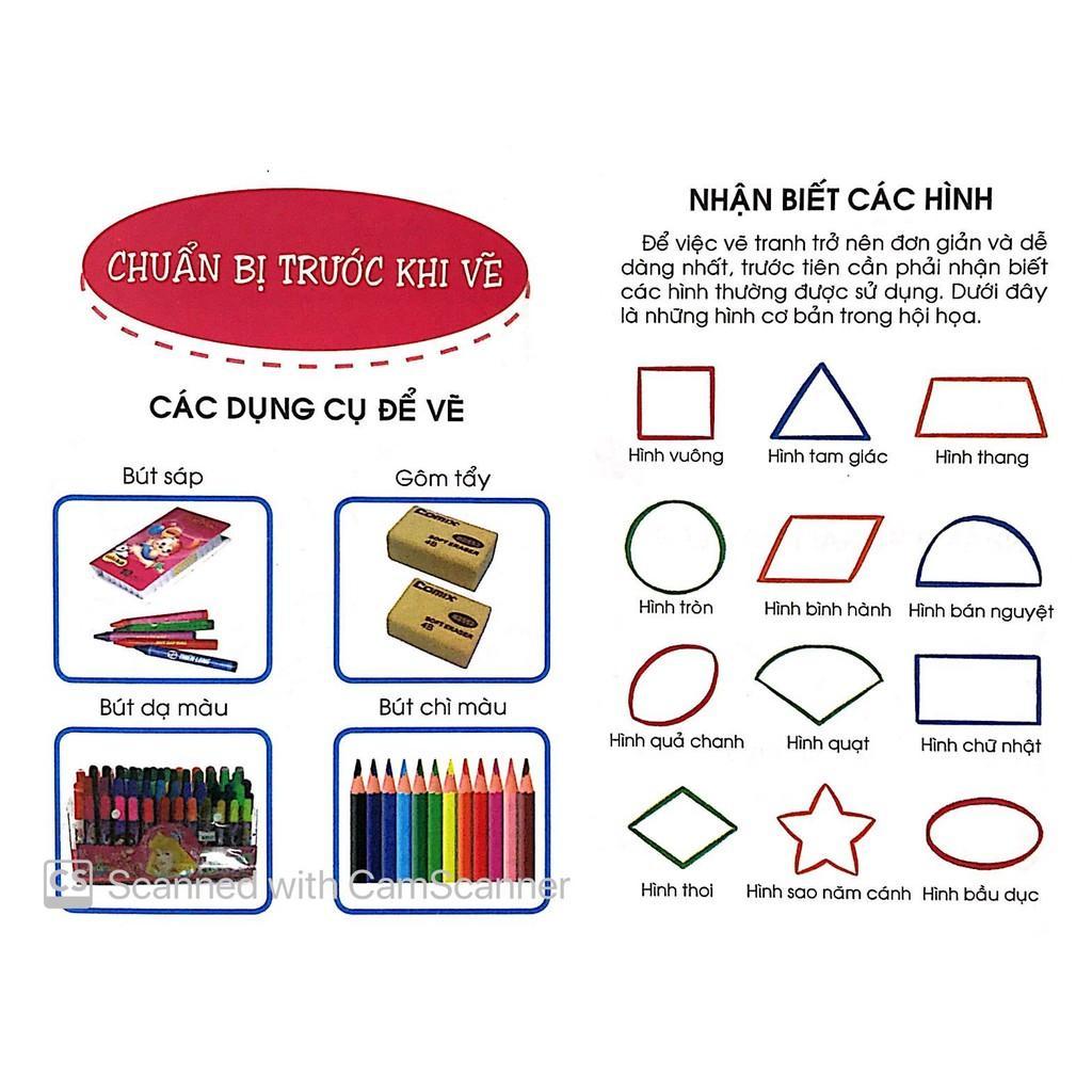 Cuốn sách giúp các bé nhận biết các công cụ để vẽ, chỉ ra những đặc điểm của từng công cụ. Qua việc dùng bút tô các nét, các bé có thể nắm vững kết cấu của các khối hình. Tập tô theo những hình vẽ trong sách, các bé sẽ học được cách phối màu sao cho hợp lý, nắm vững các thủ pháp tô màu.