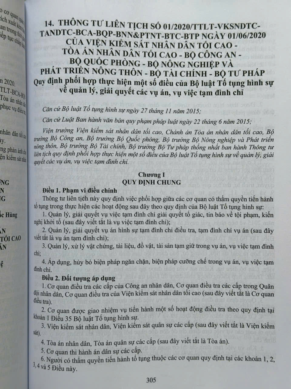 – Thông tư liên tịch 05/2025/TTLT-BCA-BQP-VKSNDTC-TANDTC ngày 01/7/2025 Quy định về phối hợp giữa các cơ quan tiến hành tố tụng trong điều tra, truy tố, xét xử vắng mặt bị can, bị cáo;