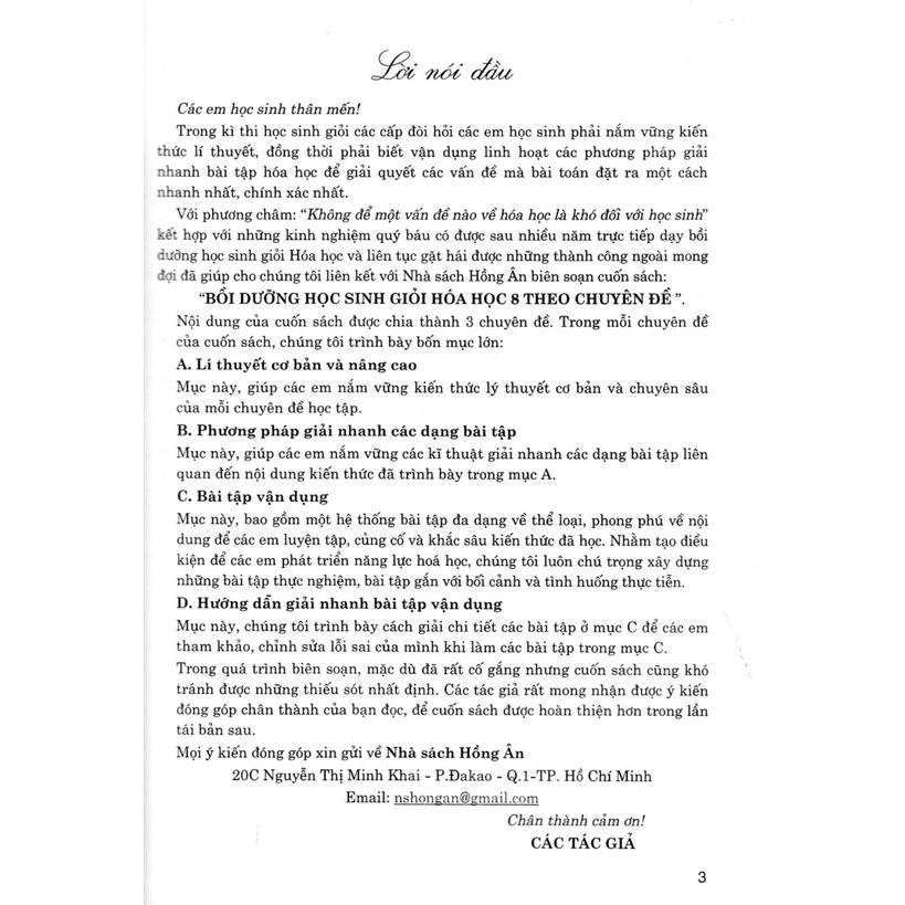 ✨Sách - Bồi Dưỡng Học Sinh Giỏi Hóa Học 8 Theo Chuyên Đề (Dùng Chung Cho Các Bộ SGK Hiện Hành) - HA