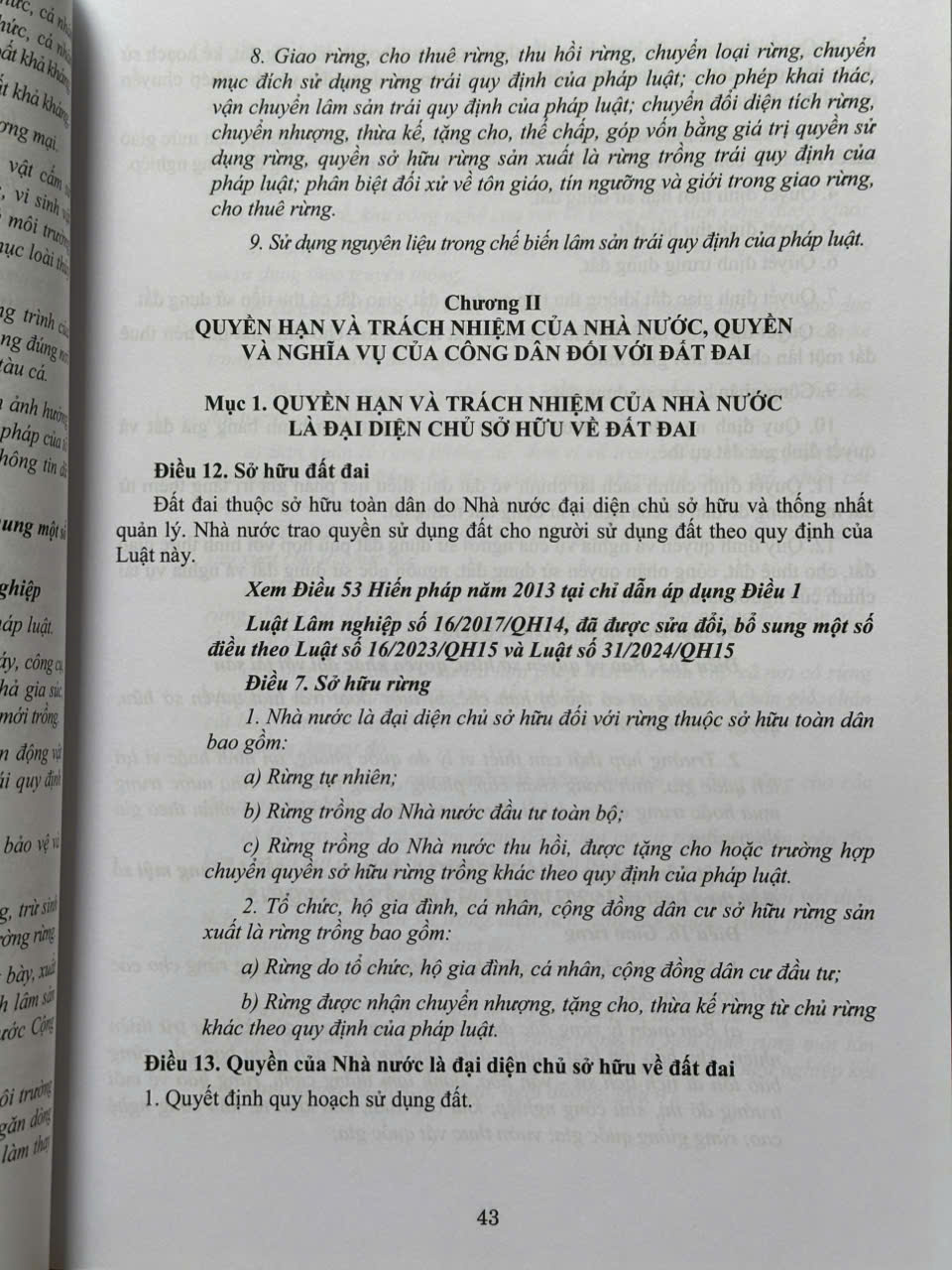 - Cuốn sách được biên soạn chỉ dẫn theo từng điều luật. Nội dung của Luật Đất đai số 31/2024/QH15 được sửa đổi, bổ sung bởi Luật số 43/2024/QH15 được trình bày với kiểu chữ không in nghiêng. Nội dung chỉ dẫn được trình bày liền kề sau từng điều luật tương ứng với kiểu chữ in nghiêng.