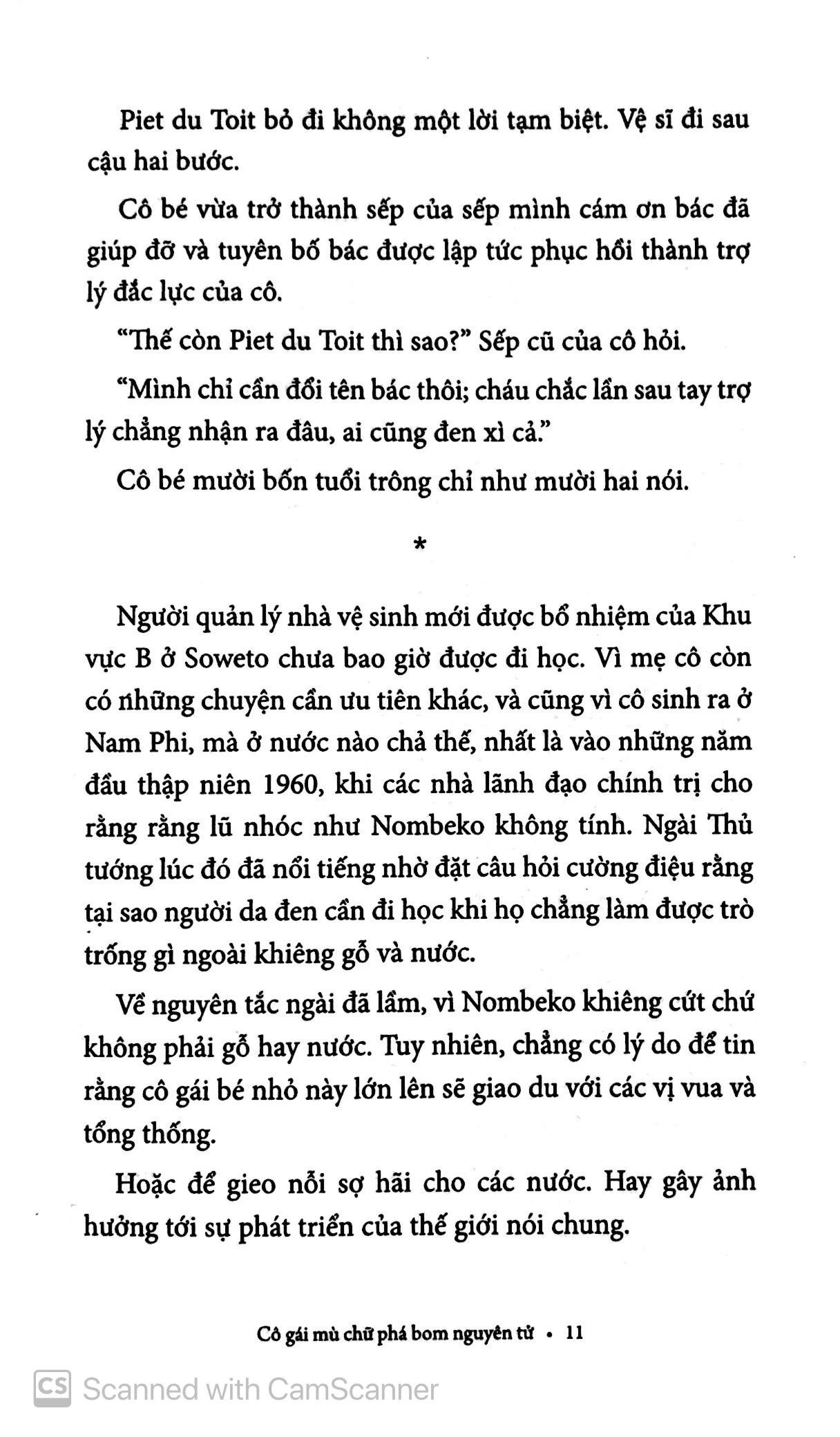 Nombeko được sinh ra trong một căn lều bé tí tẹo ở Johannesburg, thành phố lớn nhất Nam Phi. Ngay từ lúc nhỏ xíu, cô đã mau chóng hiểu rằng thế gian này chẳng hứa hẹn gì với cô ngoài việc cô hoặc chết sớm, vì m.a túy, vì rượu hay chỉ vì đơn giản là tuyệt vọng vì màu da châu Phi. Thay vì thế, Nombeko có những kế hoạch vĩ đại hơn nhiều. Cô tự học đọc học viết, bằng mưu mẹo và sự liều lĩnh đáng kinh ngạc, cô thoát khỏi khu ổ chuột với những viên kim cương lậu bạc triệu.