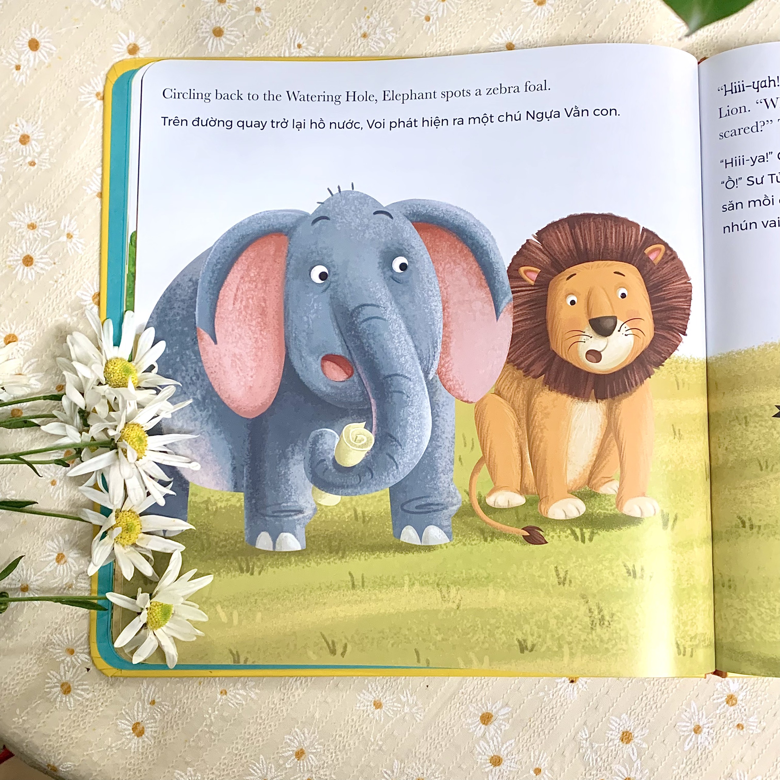 Các con được bước vào thế giới của muôn thú, từ chú cú nhỏ, sư tử, đến hà mã, gấu con,... Những hình ảnh hoạt hình các loài động vật đáng yêu và màu sắc tươi sáng trong sách sẽ khơi gợi tò mò và hứng thú của các con, giúp các con dễ dàng tiếp thu câu chuyện.