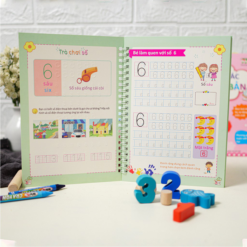 Combo gồm 3 quyển tập giúp bé luyện viết số từ 1-10,luyện viết các nét cơ bản, luyện viết bảng chữ cái đều đẹp, ngay thẳng, tập phát âm số bằng tiếng anh, phát âm chuẩn chữ cái.