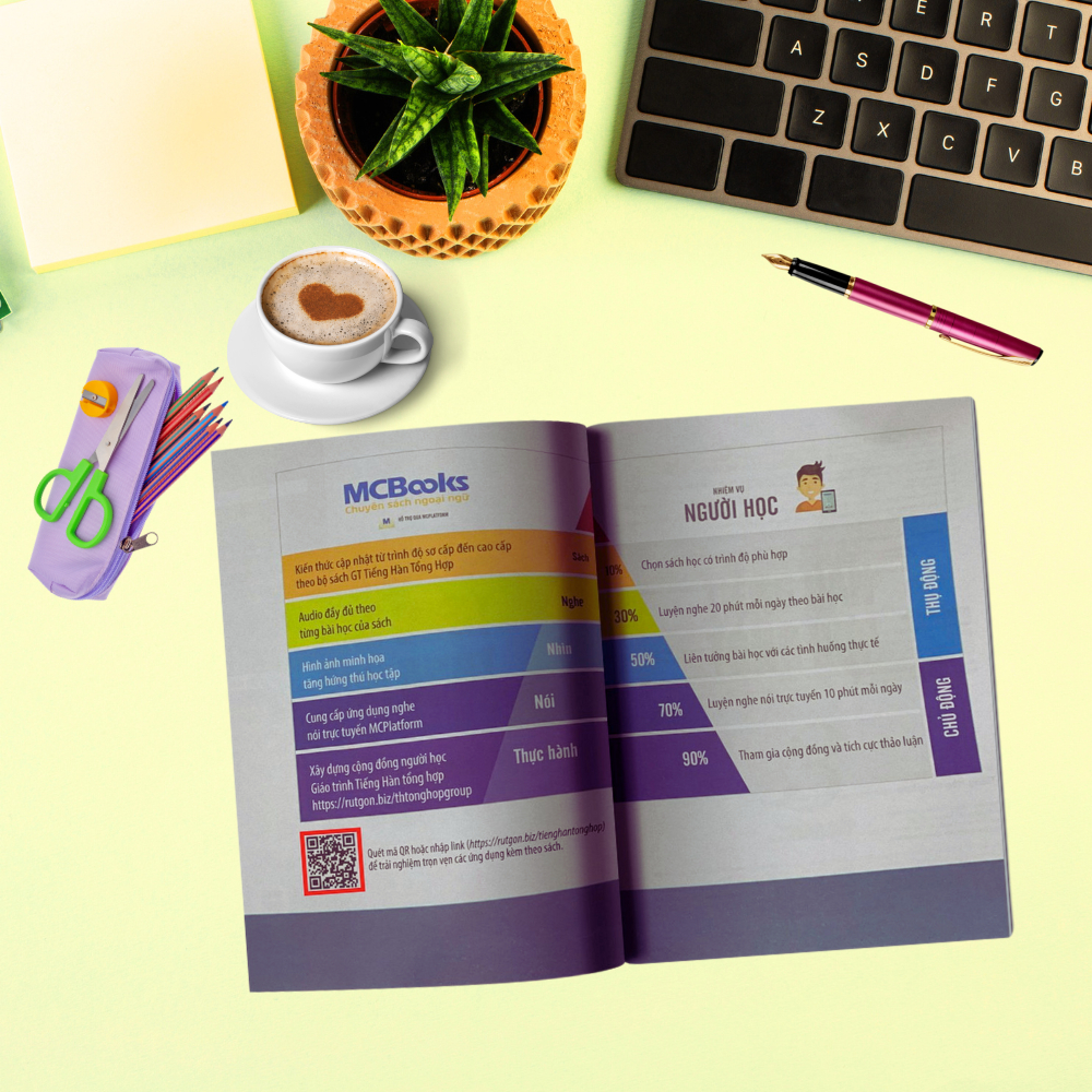• "Giáo trình tiếng Hàn tổng hợp sách bài tập" là cuốn sách hỗ trợ giúp người học ôn tập kỹ hơn và có thể luyện tập nâng cao trong những trường hợp cần thiết.