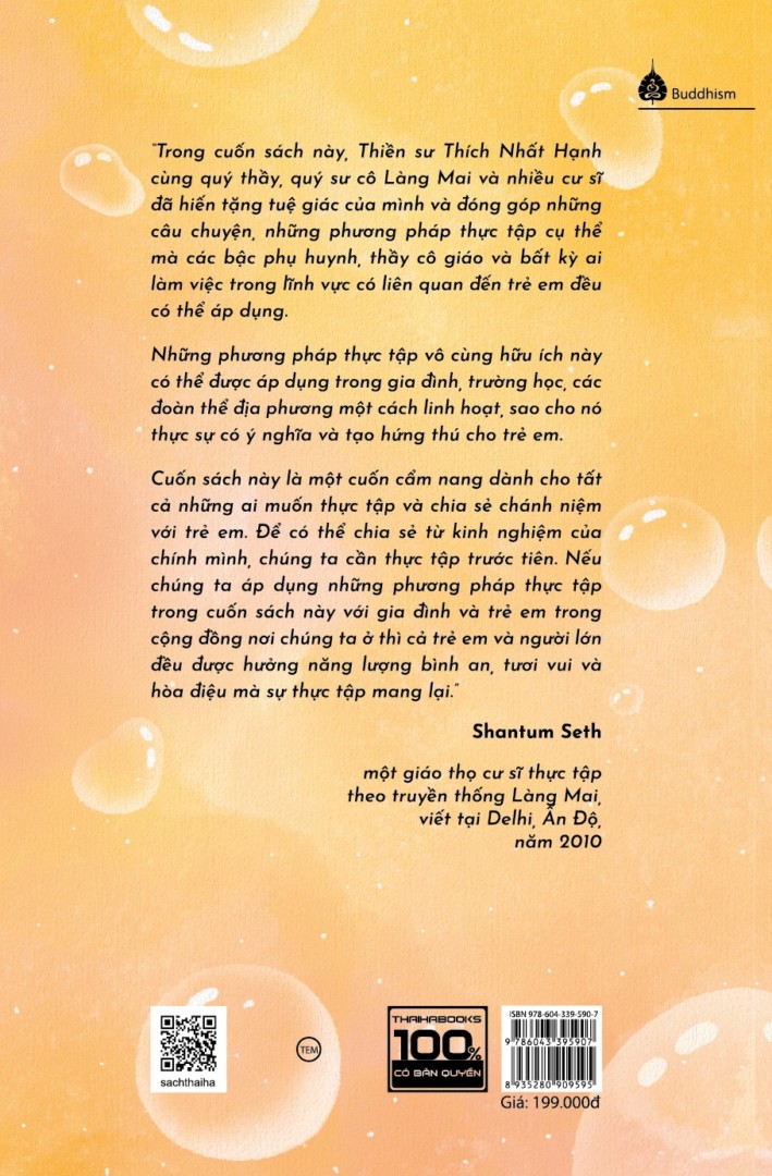 Tôi đến Làng Mai lần đầu tiên vào năm 1989 và từ đó đến nay tôi vẫn thường xuyên đến Làng tu học. Mùa hè nào, Thiền sư Nhất Hạnh cũng tổ chức khóa tu cho các gia đình. Trong những khóa tu này, thiền sinh – đủ các độ tuổi – cùng nhau thực tập trở về với chính mình để ý thức rõ mình là ai, mình đang làm gì, nói gì, đang có những cảm xúc hay suy nghĩ gì, ý thức về những gì đang diễn ra bên trong và xung quanh mình. Cuốn sách này chính là hoa trái tu học của tứ chúng Làng Mai, được hình thành dựa trên kinh nghiệm thực tập cùng với trẻ em trong mấy chục năm qua. Trong cuốn sách này, Thiền sư Thích Nhất Hạnh cùng quý thầy, quý sư cô Làng Mai và nhiều cư sĩ đã hiến tặng tuệ giác của mình và đóng góp những câu chuyện, những phương pháp thực tập cụ thể mà các bậc phụ huynh, thầy cô giáo và bất kỳ ai làm việc trong lĩnh vực có liên quan đến trẻ em đều có thể áp dụng. Những phương pháp thực tập vô cùng hữu ích này có thể được áp dụng trong gia đình, trường học, các đoàn thể địa phương một cách linh hoạt, sao cho nó thực sự có ý nghĩa và tạo hứng thú cho trẻ em.