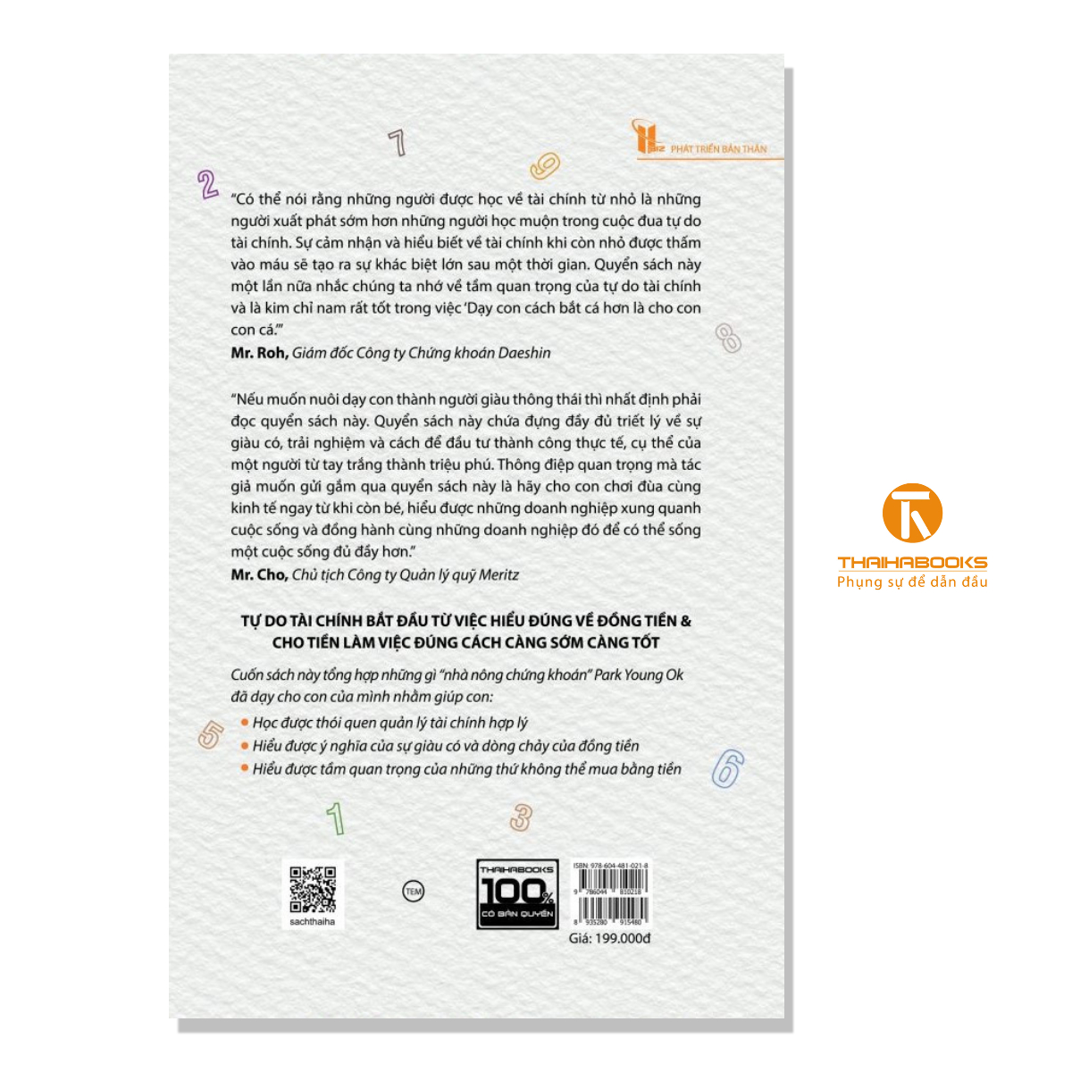[ThaiHaBooks] Ai cũng biết rằng trong đời người, tiền không phải là tất cả, nhưng thực tế nó thường chiếm hết tâm trí của chúng ta. Trong mối quan hệ bạn bè, có nhiều trường hợp chúng ta bị tổn thương chỉ vì một số tiền không đáng. Trong gia đình cũng vậy. Những mâu thuẫn sẽ không xảy ra nếu có đủ tiền cho tất cả mọi người. Dĩ nhiên có nhiều tiền thì không phải là không có mâu thuẫn, nhưng nếu có tiền thì những tổn thương do thiếu thốn sẽ bớt đi.