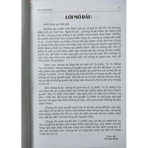 Soạn giả Vũ Văn Kính là một trong những cây đại thụ hiếm hoi còn sót lại của thế hệ đi trước. Với tâm nguyện và nhiệt tình đóng góp cho văn hóa nước nhà, sau khi đã hưu trí từ Viện Khoa học Xã hội, ông vẫn tiếp tục công việc nghiên cứu và cho ra đời nhiều công trình quan trọng, trong đó có bộ tự điển chữ Nôm này.