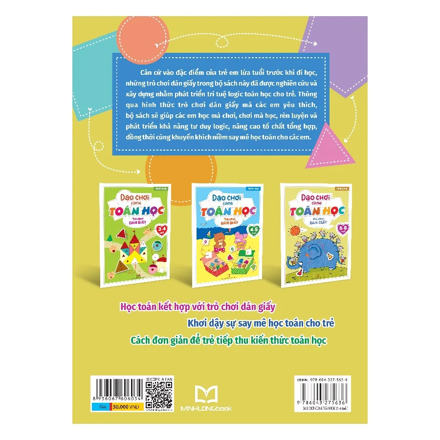 Căn cứ vào đặc điểm của trẻ em lứa tuổi trước khi đi học, những trò chơi dán giấy trong bộ sách này đã được nghiên cứu và xây dựng nhằm phát triển trí tuệ logic toán học cho trẻ. Thông qua hình thức trò chơi dán giấy mà các em yêu thích, bộ sách sẽ giúp các em học mà chơi, chơi mà học, rèn luyện và phát triển khả năng tư duy logic, nâng cao tố chất tổng hợp, đồng thời cũng khuyến khích niềm say mê học toán cho các em.