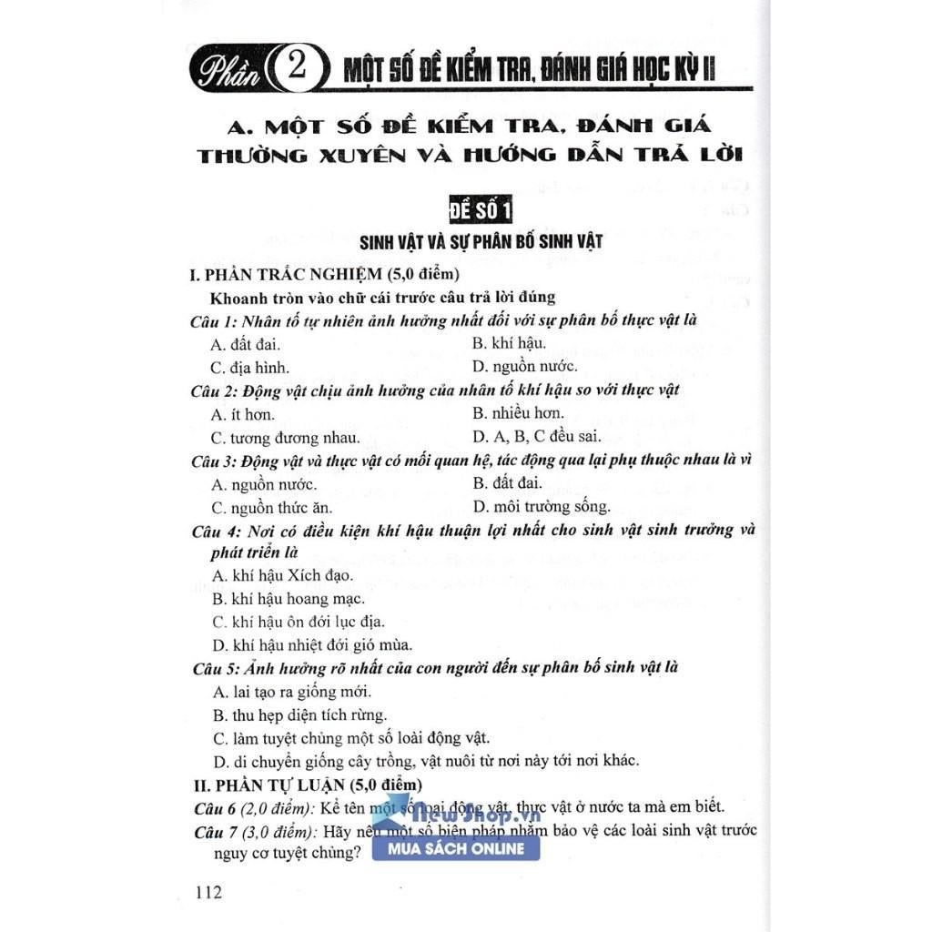 A. Một số đề kiểm tra, đánh giá thường xuyên và hướng dẫn trả lời
