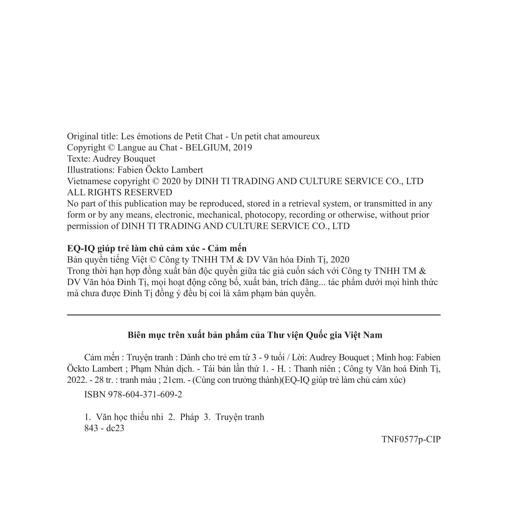 Để trả lời câu hỏi đó, Đinh Tị Books xin giới thiệu với bạn đọc bộ sách EQ-IQ giúp trẻ làm chủ cảm xúc được tác giả người Pháp Audrey Bouquet viết theo phương pháp tâm thể (sophrology) rất phổ biến ở châu Âu. Bộ sách gồm 8 cuốn với minh họa dễ thương sẽ kể cho các em nghe câu chuyện của bạn Mèo con ngộ nghĩnh, lồng ghép vào đó những bài học, lời khuyên và giải pháp để các em biết cách đối diện với nỗi sợ, nỗi lo lắng, cơn giận, niềm vui cũng như nhiều cảm xúc khác nữa.