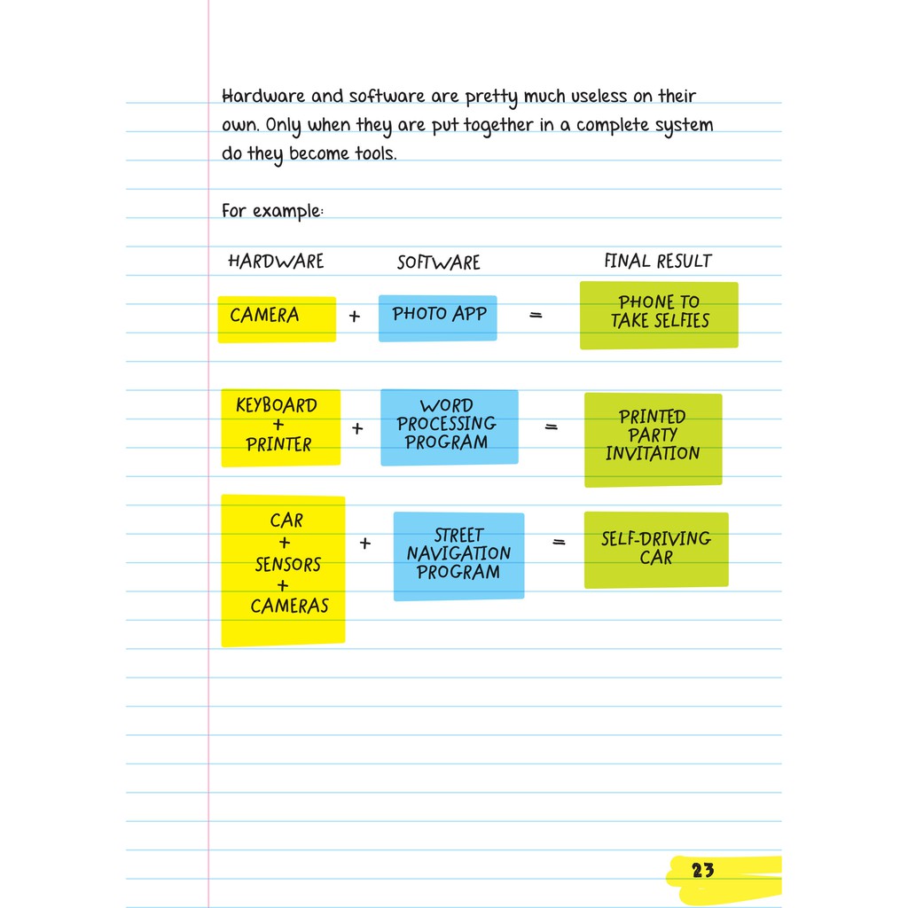 • Cuốn sách với các khái niệm then chốt, các thiết bị ghi nhớ, định nghĩa, sơ đồ, và hình tượng trưng sẽ khiến các bạn nhỏ mê mẩn tìm hiểu về khoa học máy tính.
