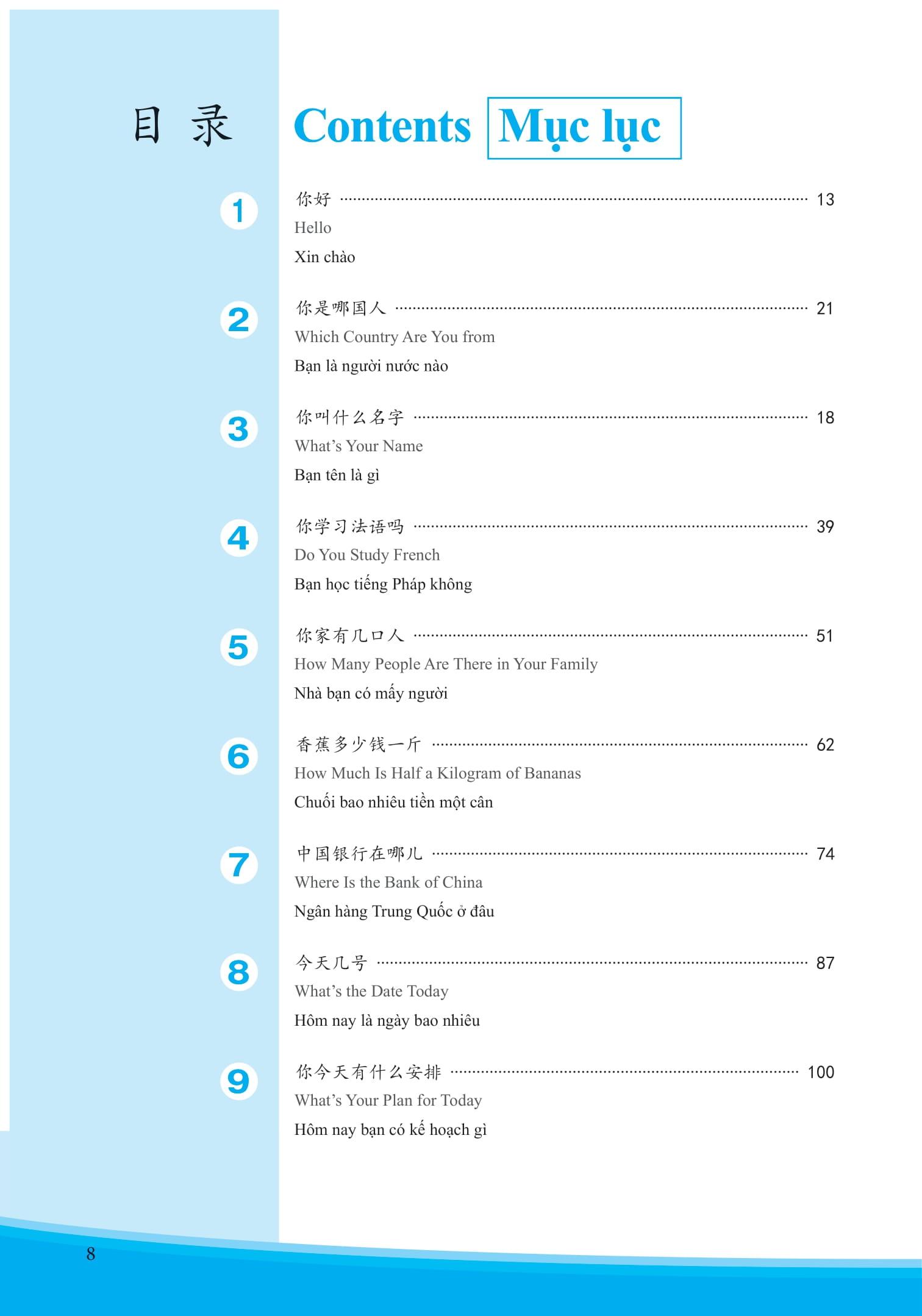 Tiếng Trung Dành Cho Học Sinh Trung Học - Tập 1 Bộ sáchTiếng Trung Dành Cho Học Sinh Trung Họccó tám tập. Mỗi tập được chia thành năm chương, đề cập đến các chủ đề