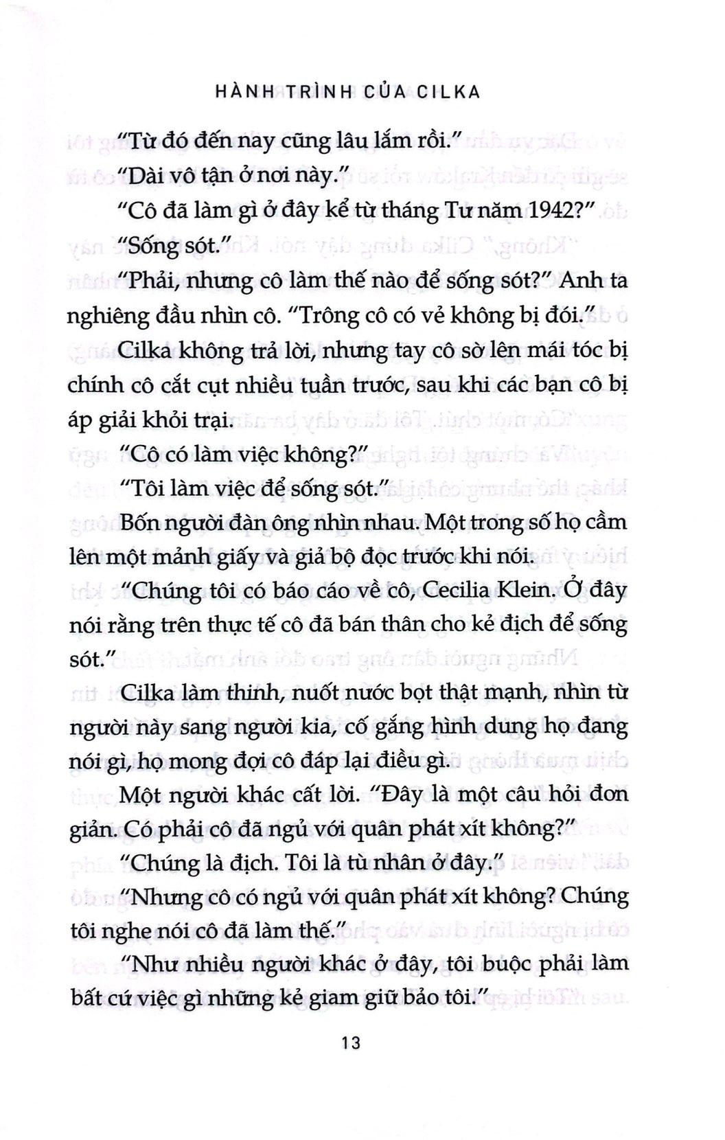 Năm 1942, Cilka Klein chỉ mới mười sáu tuổi khi cô cùng gia đình bị đưa đến trại tập trung Auschwitz-Birkenau rồi lọt vào mắt viên sĩ quan SS cấp cao tại đó. Cilka nhanh chóng học được rằng quyền lực, dù là bị ép phải nhận, đồng nghĩa với sống sót.