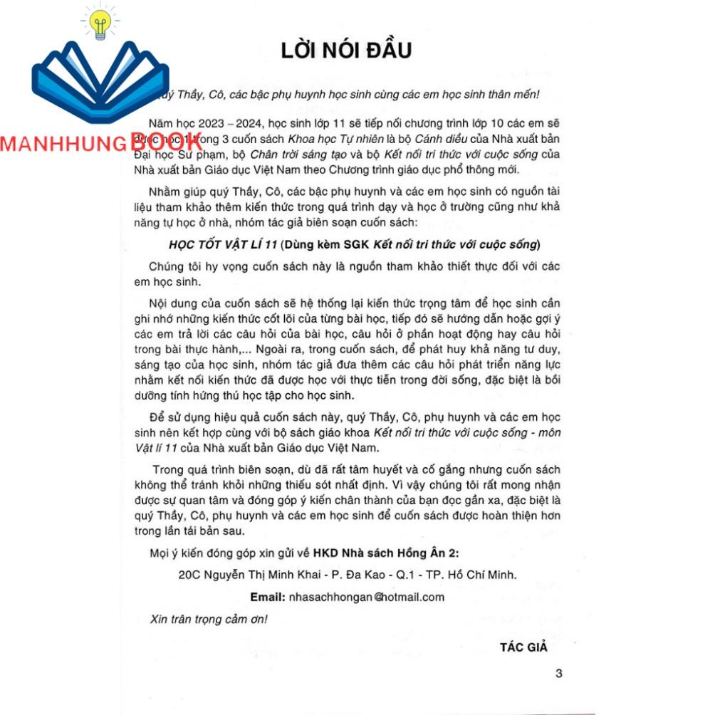 Nhằm giúp quý Thầy, Cô, các bậc phụ huynh và các em học sinh có nguồn tài liệu tham khảo thêm kiến thức trong quá trình dạy và học ở trường cũng như khả năng tự học ở nhà, nhóm tác giả biên soạn cuốn sách: HỌC TỐT VẬT LÍ 11 (Dùng kèm SGK Kết nối tri thức với cuộc sống)