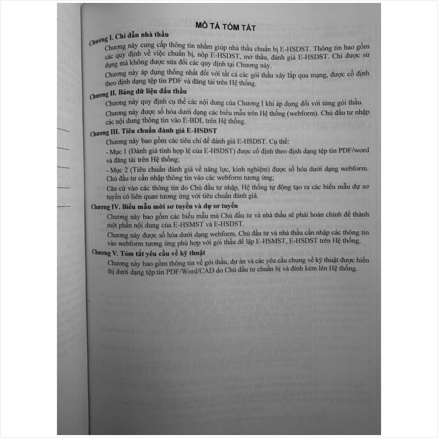 - Toàn bộ sách bìa mềm khổ lớn 20 x 28 cm phân phối bởi Nhà sách Nam Việt đều được bọc sách Plastic MIỄN PHÍ và xuất hóa đơn điện tử đầy đủ, nhanh chóng. …/… Lời giới thiệu: Ngày 17/11/2024, Bộ Kế hoạch và Đầu tư đã ban hành Thông tư số 22/2024/TT-BKHĐT hướng dẫn việc cung cấp, đăng tải thông tin về lựa chọn nhà thầu và mẫu hồ sơ đấu thầu trên Hệ thống mạng đấu thầu quốc gia. Thông tư 22/2024/TT-BKHĐT là một văn bản pháp luật quan trọng, đánh dấu bước tiến mới trong việc quản lý và điều hành các hoạt động đấu thầu, thúc đẩy việc minh bạch và hiệu quả trong lĩnh vực đấu thầu tại Việt Nam. Thông tư 22/2024/TT-BKHĐT cung cấp 42 mẫu hồ sơ chuẩn hóa (Từ Mẫu 1A tới Mẫu 14D) và 17 phụ lục (Từ Phụ lục 1A- Phụ lục 10), chính thức có hiệu lực từ 01/01/2025 (một phần hiệu lực từ 01/12/2024). Để kịp thời đáp ứng nhu cầu thông tin của các cơ quan, ban, ngành cùng các nhà thầu, nhà đầu tư và đông đảo bạn đọc trong cả nước về các quy định pháp luật mới trong lĩnh vực đấu thầu, Nhà sách Nam Việt xin trân trọng giới thiệu cuốn sách: Hướng Dẫn Cung Cấp, Đăng Tải Thông Tin Về Lựa Chọn Nhà Thầu Và Mẫu Hồ Sơ Đấu Thầu Trên Hệ Thống Mạng Đấu Thầu Quốc Gia – Tuyển Tập Mẫu Hồ Sơ Mời Thầu Xây Lắp (tập 2) …//… Nội dung quyển 2 gồm các nội dung sau: MẪU SỐ 9A. Hồ Sơ Mời Thầu Cung Cấp Hàng Hóa Và Xây Lắp (PC) Qua Mạng Theo Phương Thức Một Giai Đoạn Một Túi Hồ Sơ MẪU SỐ 9B. Hồ Sơ Mời Thầu Cung Cấp Hàng Hóa Và Xây Lắp Qua Mạng Theo Phương Thức Một Giai Đoạn Hai Túi Hồ Sơ MẪU SỐ 9C. Hồ Sơ Mời Sơ Tuyển Cung Cấp Hàng Hóa Và Xây Lắp (PC) Qua Mạng MẪU SỐ 10A. Hồ Sơ Mời Thầu Thiết Kế, Cung Cấp Hàng Hóa Và Xây Lắp (EPC) Qua Mạng Một Giai Đoạn Một Túi Hồ Sơ MẪU SỐ 10B. Hồ Sơ Mời Thầu Thiết Kế, Cung Cấp Hàng Hóa Và Xây Lắp (EPC) Qua Mạng Một Giai Đoạn Hai Túi Hồ Sơ MẪU SỐ 10C. Hồ Sơ Mời Sơ Tuyển Thiết Kế, Cung Cấp Hàng Hóa Và Xây Lắp (EPC) Qua Mạng …//… Quý khách tham khảo thêm nội dung quyển 1 như sau: MẪU SỐ 3A. Hồ Sơ Mời Thầu Xây Lắp Qua Mạng Một Giai Đoạn Một Túi Hồ Sơ MẪU SỐ 3B. Hồ Sơ Mời Thầu Xây Lắp Qua Mạng Một Giai Đoạn Hai Túi Hồ Sơ MẪU SỐ 3C. Hồ Sơ Mời Sơ Tuyển Xây Lắp Qua Mạng MẪU SỐ 8A. Hồ Sơ Mời Thầu Thiết Kế Và Xây Lắp (EC) Qua Mạng Một Giai Đoạn Một Túi Hồ Sơ MẪU SỐ 8B. Hồ Sơ Mời Thầu Thiết Kế Và Xây Lắp (EC) Qua Mạng Một Giai Đoạn Hai Túi Hồ Sơ MẪU SỐ 8C. Hồ Sơ Mời Sơ Tuyển Thiết Kế Và Xây Lắp (EC) Qua Mạng *** Quý khách hàng hãy an tâm khi mua sách tại Nhà sách Nam Việt, cam kết uy tín, chất lượng, sách bản gốc chuẩn đẹp, được kiểm hàng, hài lòng mới thanh toán, sách đã được bọc plastic cao cấp miễn phí! .../... Cảm ơn các bạn đã ghé thăm shop Nhà sách Nam Việt ! Sách Hướng Dẫn Cung Cấp, Đăng Tải Thông Tin về Lựa chọn Nhà Thầu và Mẫu Hồ Sơ Đấu Thầu Trên Hệ Thống Mạng Đấu Thầu Quốc Gia – Thông tư 22/2024/TT-BKHĐT (Quyển 2) Sách Hướng Dẫn Cung Cấp, Đăng Tải Thông Tin về Lựa chọn Nhà Thầu và Mẫu Hồ Sơ Đấu Thầu Trên Hệ Thống Mạng Đấu Thầu Quốc Gia – Thông tư 01/2024/TT-BKHĐT (Quyển 2)