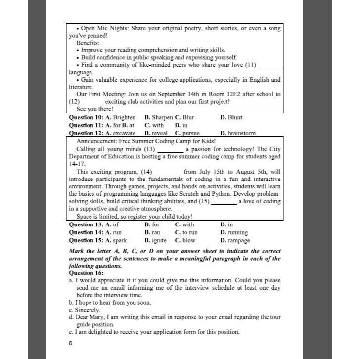 Phần hướng dẫn giải chi tiết các câu hỏi sau mỗi đề luyện tập sẽ giúp các bạn nắm vững cách giải quyết các vấn đề thường gặp trong các kì thi. Phần hướng dẫn này cũng sẽ giúp các bạn ôn tập những từ ngữ chủ yếu và những chủ điểm ngữ pháp quan trọng trong chương trình Tiếng Anh phổ thông.