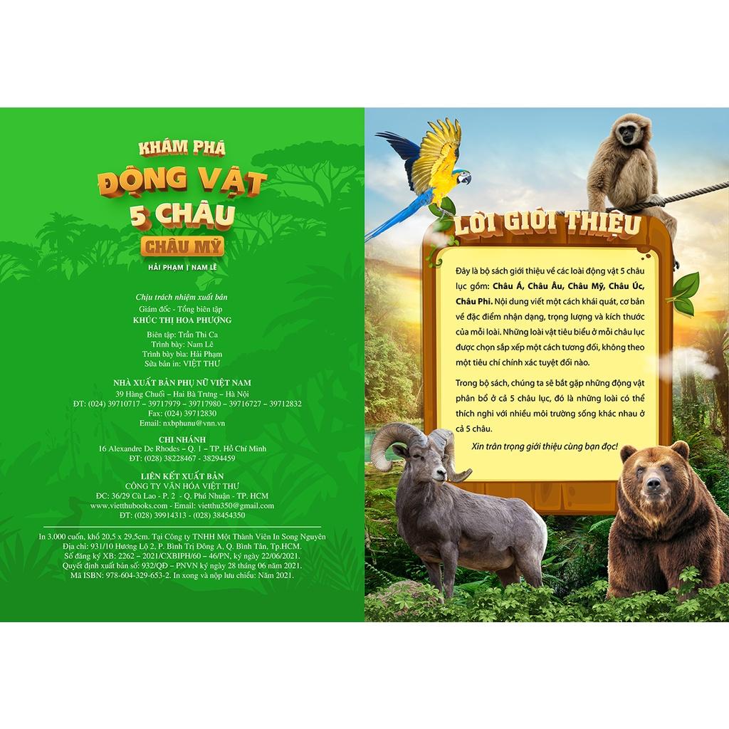 Đây là bộ sách giới thiệu về các loài động vật 5 châu lục gồm: Châu Á, Châu Âu, Châu Mỹ, Châu Úc, Châu Phi. Nội dung viết một cách khái quát, cơ bản về đặc điểm nhận dạng, trọng lượng và kích thước của mỗi loài. Những loài vật tiêu biểu ở mỗi châu lục được chọn sắp xếp một cách tương đối, không theo một tiêu chí chính xác tuyệt đối nào.