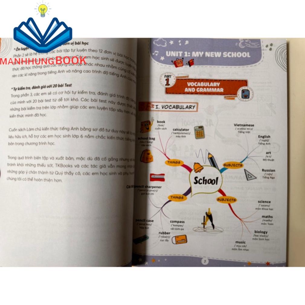 Cuốn sách “Làm chủ kiến thức tiếng Anh bằng sơ đồ tư duy Lớp 6 ” gồm 3 phần bao gồm: