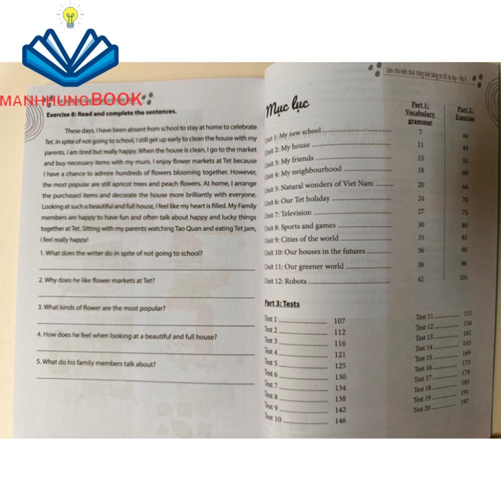 Trong phần 3, các em sẽ có cơ hội tự kiểm tra, đánh giá trình độ tiếng Anh của mình với 20 bài test từ dễ đến khó. Các bài test này được thiết kế như những bài kiểm tra trên lớp nhằm giúp các em luyện tập sâu hơn về những kiến thức mình đã học.