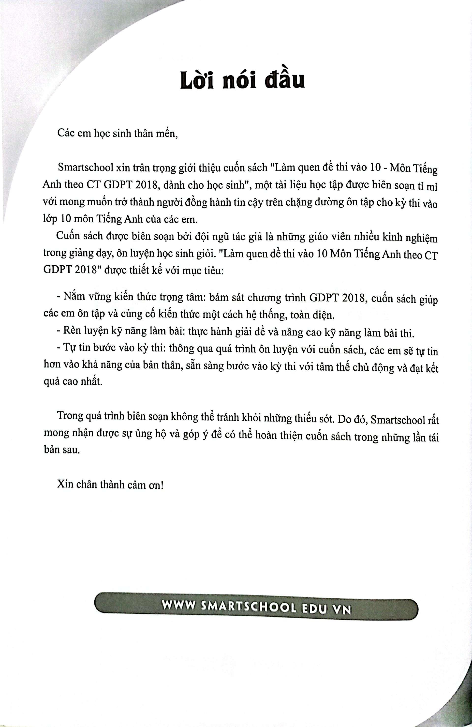 Sách "Làm quen đề thi vào 10 môn Tiếng Anh theo CT GDPT 2018" Cẩm nang ôn thi giúp học sinh tự tin đạt điểm cao, giúp thầy Cô giáo tiết kiệm thời gian tìm kiếm đề thi chất lượng