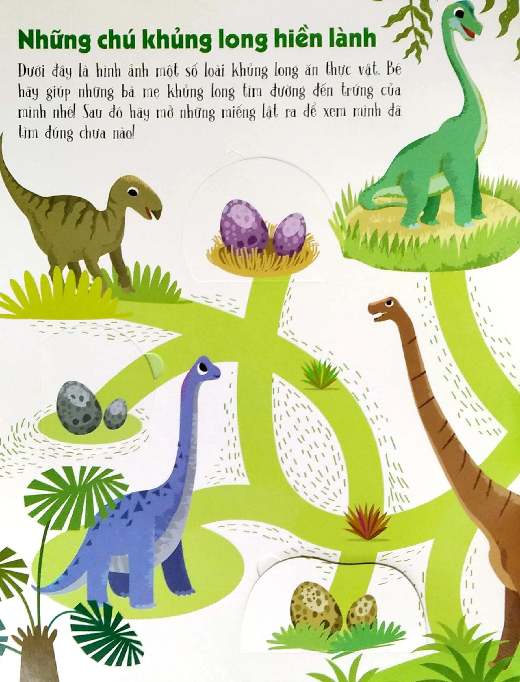 Có một số loài khủng long ăn thực vật nên được gọi là những chú khủng long hiền lành. Em hãy giúp những bà mẹ khủng long tìm đường đến trứng của mình và mở những miếng lật ra để xem mình đã tìm đúng chưa nào!