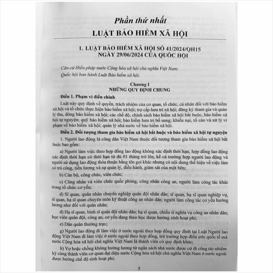 - Toàn bộ sách bìa mềm khổ lớn 20 x 28 cm phân phối bởi Nhà sách Nam Việt đều được bọc sách Plastic MIỄN PHÍ và xuất hóa đơn điện tử đầy đủ, nhanh chóng. …//… Lời giới thiệu: Luật Bảo hiểm xã hội số 41/2024/QH15 đã chính thức được thông qua tại Kỳ họp thứ 7, Quốc hội khóa XV ngày 29/6/2024. Luật gồm 11 chương và 141 điều, tăng 2 chương và 16 điều so với Luật BHXH 2014. Văn bản quan trọng này có hiệu lực từ ngày 1/7/2025. So với Luật BHXH năm 2014, Luật Bảo hiểm xã hội 2024 có nhiều thay đổi hướng tới các mục tiêu lớn như: mở rộng đối tượng tham gia; gia tăng quyền, lợi ích trong thụ hưởng chính sách; sửa đổi căn bản các vướng mắc, bất cập từ thực tiễn triển khai thực hiện Luật BHXH 2014; tăng cường chế tài xử lý hành vi chậm đóng, trốn đóng bảo hiểm xã hội… Nhằm góp phần phổ biến những quy định pháp luật về bảo hiểm xã hội, bảo hiểm y tế, bảo hiểm thất nghiệp cho người dân, người lao động, cán bộ công nhân viên chức cũng như các cơ quan ban ngành, Nhà sách Nam Việt xin trân trọng giới thiệu cuốn sách: Sách Luật Bảo Hiểm Xã Hội - Luật Bảo Hiểm Y Tế - Bảo Hiểm Thất Nghiệp và Các Chính Sách Mới về Bảo Hiểm …//… Nội dung sách gồm 5 phần sau: Phần thứ nhất. Luật Bảo hiểm xã hội 2024 Phần thứ hai. Luật Bảo hiểm y tế và văn bản hướng dẫn thi hành Phần thứ ba. Các quy định về bảo hiểm thất nghiệp Phần thứ tư. Các chính sách mới về bảo hiểm, tiền lương, trợ cấp, phụ cấp Phần thứ năm. Quy định xử phạt hành chính trong lĩnh vực lao động, bảo hiểm xã hội *** Quý khách hàng hãy an tâm khi mua sách tại Nhà sách Nam Việt, cam kết uy tín, chất lượng, sách bản gốc chuẩn đẹp, được kiểm hàng, hài lòng mới thanh toán, sách đã được bọc plastic cao cấp miễn phí! …//… Cảm ơn các bạn đã ghé thăm shop Nhà sách Nam Việt ! Sách Luật Bảo Hiểm Xã Hội - Luật Bảo Hiểm Y Tế - Bảo Hiểm Thất Nghiệp và Các Chính Sách Mới về Bảo Hiểm Sách Luật Bảo Hiểm Xã Hội - Luật Bảo Hiểm Y Tế - Bảo Hiểm Thất Nghiệp và Các Chính Sách Mới về Bảo Hiểm