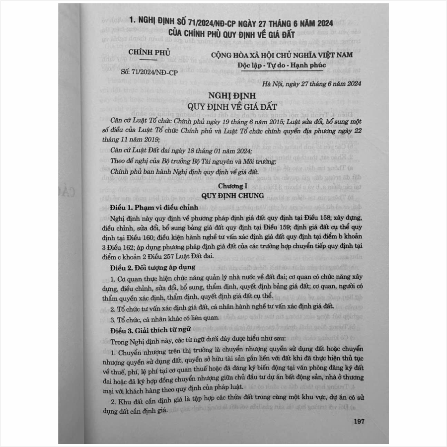 Ngày 18/01/2024, Quốc hội nước Cộng hòa xã hội chủ nghĩa Việt Nam thông qua Luật Đất đai số 31/2024/QH15, đã thể chế hóa đầy đủ, kịp thời các quan điểm, chủ trương của Đảng