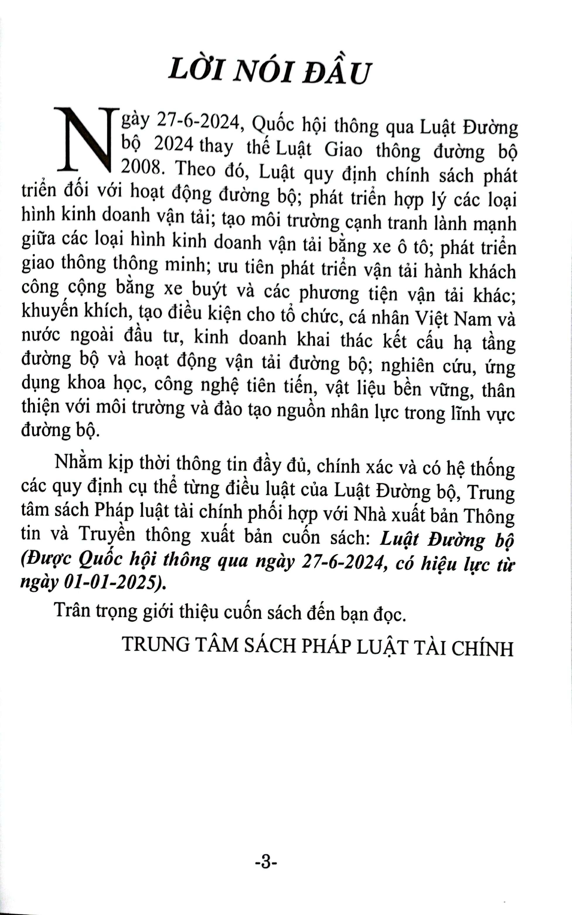 ✨Sách - Luật Đường Bộ (Được Quốc Hội Thông Qua Ngày 27-6-2024, Có Hiệu Lực Từ Ngày 01-01-2025)