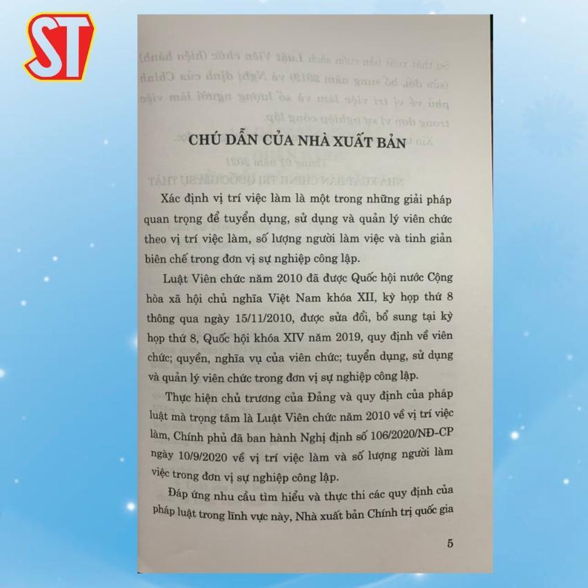 ✨Sách - Luật Viên Chức (Sửa Đổi, Bổ Sung Năm 2019) Và Nghị Định Của Chính Phủ Về Vị Trí Việc Làm Và Số Lượng - NXB Chính Trị Quốc Gia