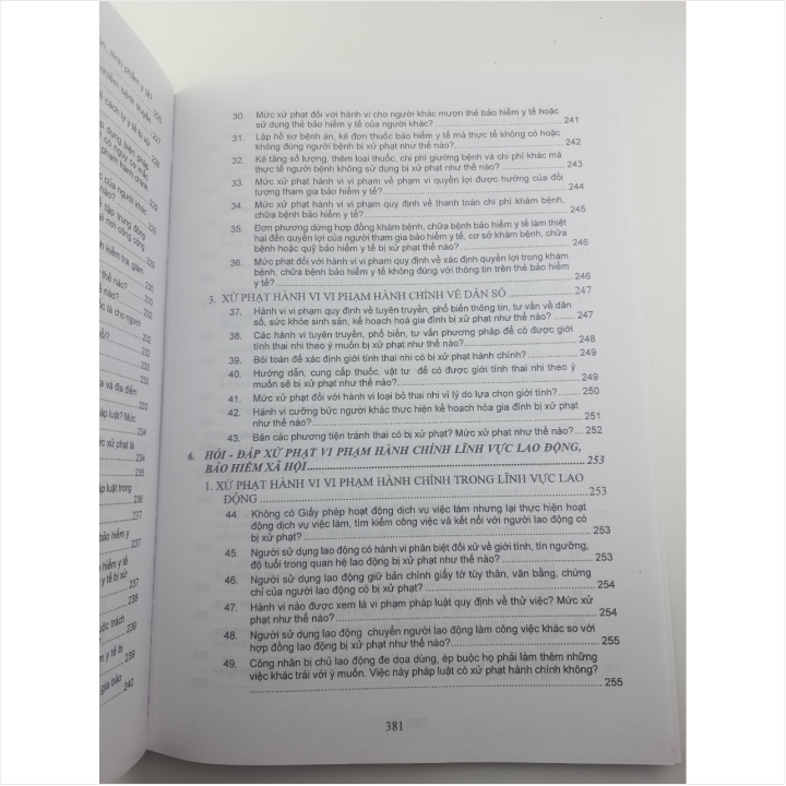 - Toàn bộ sách bìa mềm khổ lớn 20 x 28 cm phân phối bởi Nhà sách Nam Việt đều được bọc sách Plastic MIỄN PHÍ và xuất hóa đơn điện tử đầy đủ, nhanh chóng. Nội dung sách gồm 2 phần: Phần thứ nhất. LUẬT XỬ LÝ VI PHẠM HÀNH CHÍNH VÀ VĂN BẢN HƯỚNG DẪN THI HÀNH Phần thứ hai. 250 CÂU HỎI - ĐÁP XỬ PHẠT VI PHẠM HÀNH CHÍNH THƯỜNG GẶP (Hỏi - đáp xử phạt vi phạm hành chính trong lĩnh vực y tế, lĩnh vực lao động, bảo hiểm xã hội, lĩnh vực an ninh, trật tự, an toàn xã hội; phòng, chống tệ nạn xã hội; phòng cháy và chữa cháy; phòng, chống bạo lực gia đình, sử dụng mạng xã hội, chống tin nhắn rác, thư điện tử rác, cuộc gọi rác, lĩnh vực giao thông đường bộ, lĩnh vực đất đai) Cảm ơn các bạn đã ghé thăm shop Nhà sách Nam Việt rất nhiều ạ!