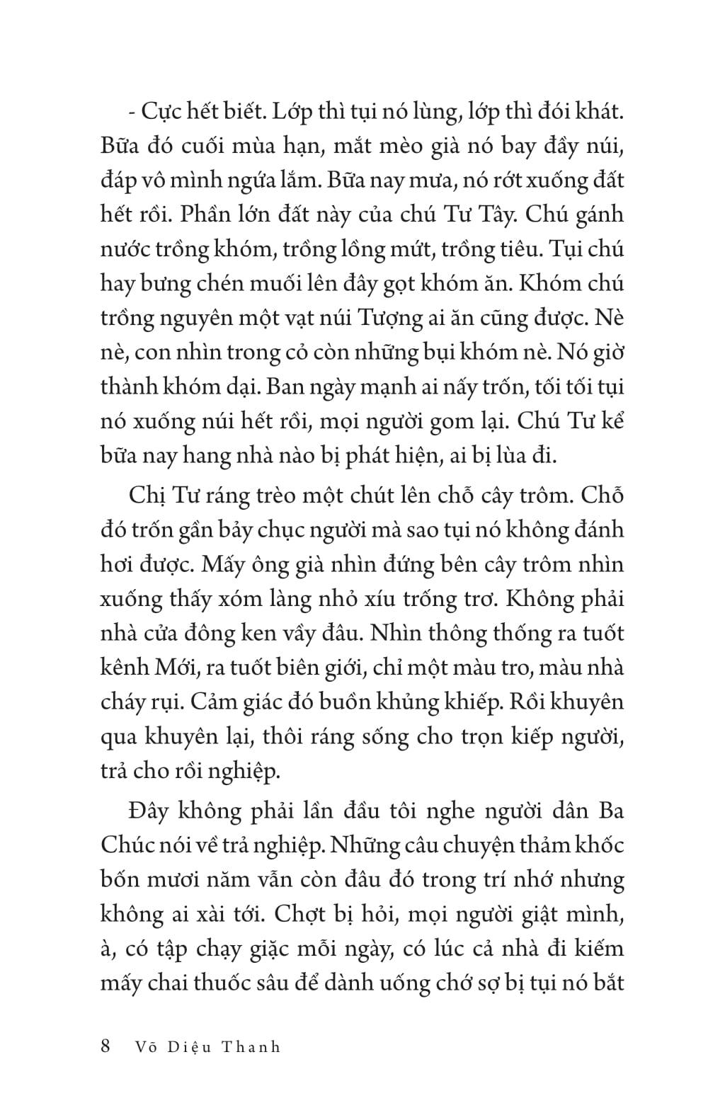 Tập tản văn Mùa hoa trên những lối sông là những cảm xúc da diết của chị về miền Tây Nam bộ. Nơi đó có núi Ba Chúc, có cuộc mưu sinh nhọc nhằn, có tình người chân chất, có con nước uốn lượn - “Tôi thèm những con nước chảy về từ ký ức. Có nhiều lúc ngồi viết, tôi muốn dẫn một dòng nước chạy ngang bàn viết của m.ình. Một dòng nước có g.ấp khúc, có uốn lượn để tôi nghe được tiếng nước đang trăn trở đâu đó bên tai. Tôi thèm đến độ ngủ chiêm bao thấy được những trưa ngồi trên cầu thang nhà lượm những miếng lưới rách để giăng chơi mà gỡ được những con cá linh vảy bạc nhảy soi sói. Giấc mơ xa xỉ nhất trong đời”. Nơi đó cũng rực rỡ những mùa hoa – “Từ bông so đũa trắng ngần cho tới bông s.úng mang sắc hồng ngọt ngào, bông điên điển vàng ươm, bông sầu đâu xanh biếc hoặc bông lục bình tím hồng lãng mạn đều được thấm đẫm vị sông nước, vị quê và hòa quyện với nước mắm cá linh non”.