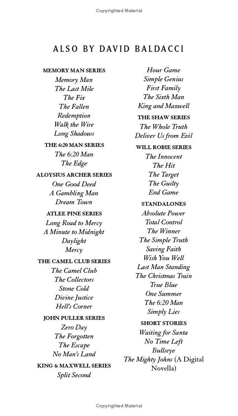 When Amos Decker is called to South Florida to investigate a double homicide, the case appears straightforward: A federal judge and her bodyguard have been found dead, the judge’s face sporting a blindfold with two eye holes crudely cut out, a clear sign that she’d made one too many enemies over her years on the bench.