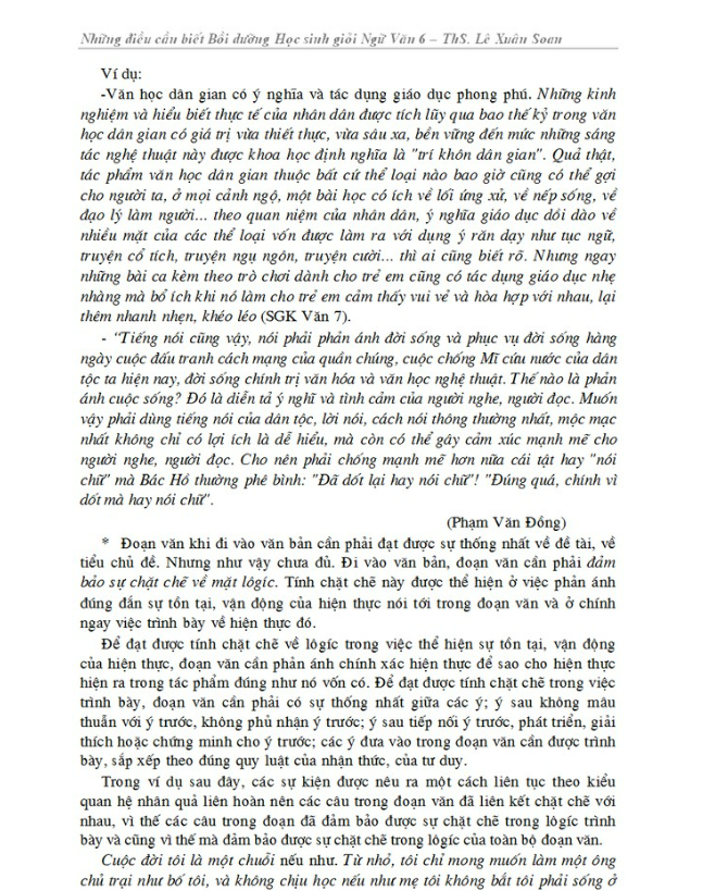 Những điều cần biết bồi dưỡng học sinh giỏi Ngữ văn Lớp 6.
