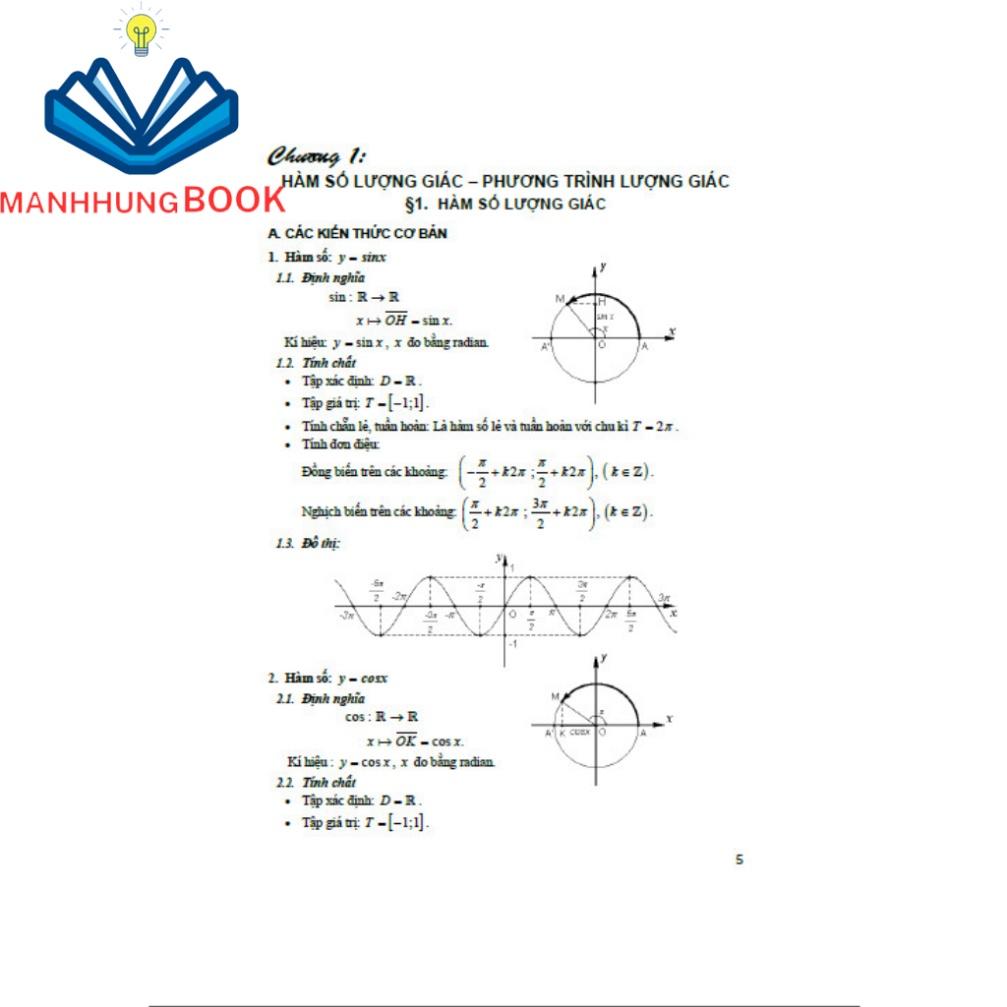 Chương 1: Hàm số lượng giác, phương trình lượng giác Chương 2: Tổ hợp- xác suất Chương 3: dãy số, cấp số cộng , cấp số nhân Chương 4 : giới hạn Chương 5: Đạo Hàm Mổi chương có các phần tóm tắt lý thuyết và các ví dụ minh họa, các em nên đọc kỹ và nghiên cứu để quá trình học tập được hiệu quả hơn.