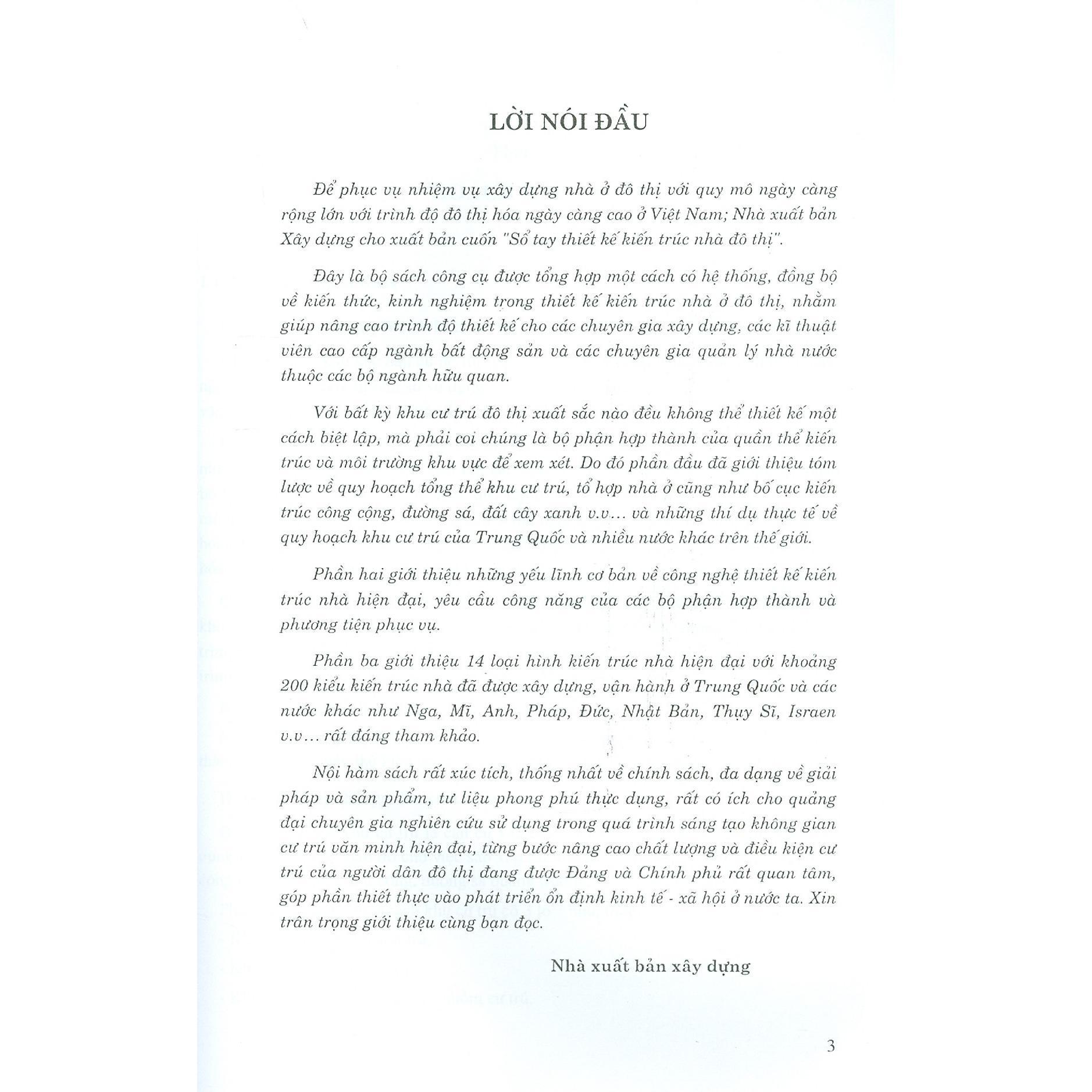 Đây là bộ sách công cụ được tổng hợp một cách có hệ thống, đồng bộ về kiến thức, kinh nghiệm trong thiết kế kiến trúc nhà ở đô thị, nhằm giúp nâng cao trình độ thiết kế cho các chuyên gia xây dựng, các kĩ thuật viên cao cấp ngành bất động sản và các chuyên gia quản lý nhà nước thuộc các bộ ngành hữu quan.
