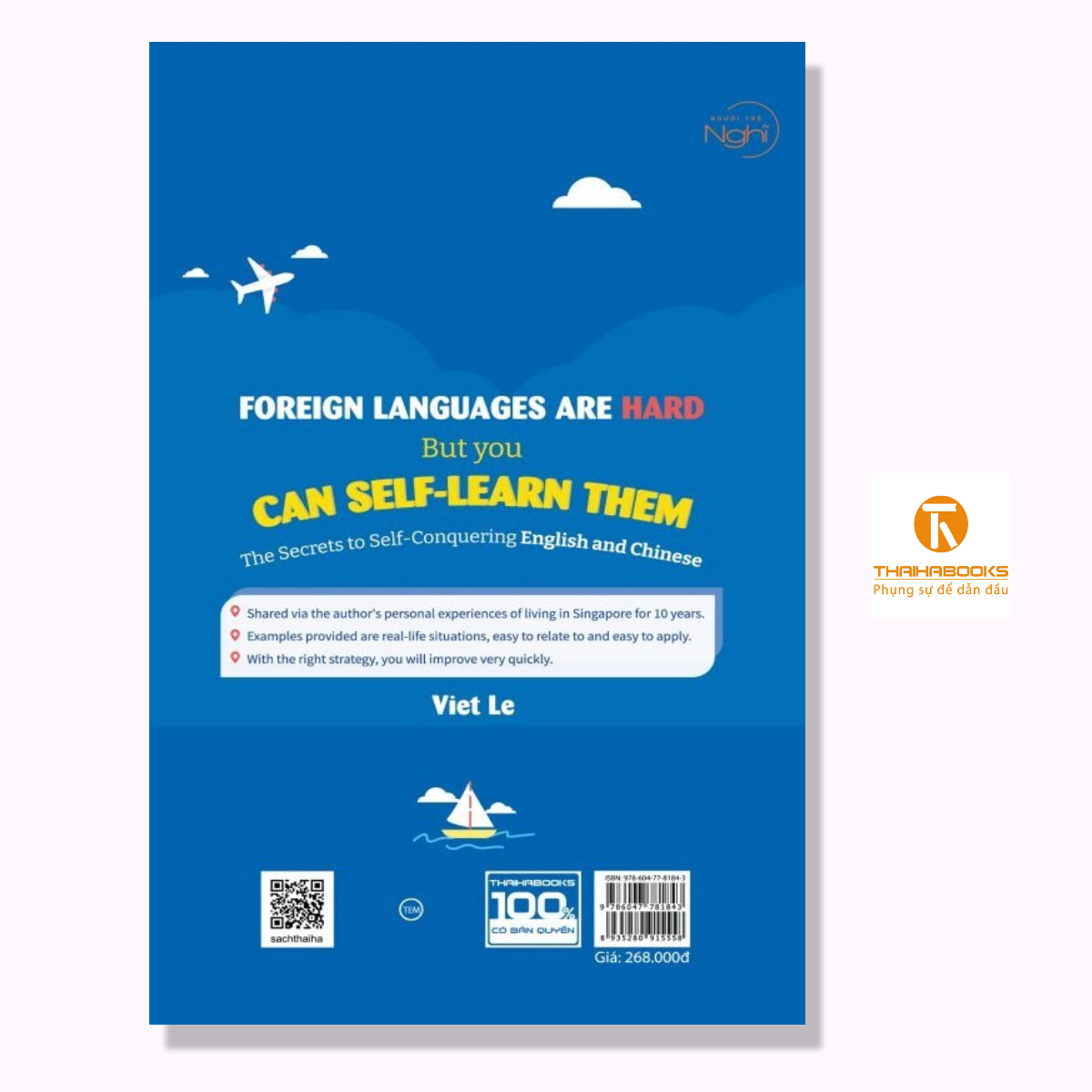(Song ngữ) NGOẠI NGỮ KHÓ ĐẤY NHƯNG BẠN TỰ HỌC ĐƯỢC: Bí quyết tự học chinh phục song ngữ Anh, Trung   Công ty phát hành: Thái Hà Tác giả: Việt Lê Số trang: 432 Nhà xuất bản: Thế Giới Khổ: 13 x 20.5 cm Năm xuất bản: 2023   [ThaiHaBooks] Học ngoại ngữ rất quan trọng trọng trong xu thế toàn cầu hoá như hiện nay. Cần nhất có lẽ vẫn là tiếng Anh, nhưng những ngoại ngữ khác cũng đang dần chứng minh tầm quan trọng không kém như tiếng Trung, tiếng Nhật, tiếng Hàn, tiếng Pháp, tiếng Đức, Nếu bạn đang đọc cuốn sách này, có nghĩa là bạn đang muốn học một ngoại ngữ mới. Có thể bạn đã đạt được một trình độ nhất định nào đó, nhưng đang bị bế tắc vì đã lâu mà vẫn chưa có cái thiện đáng kể. Hoặc cũng có thể bạn đã thử học nhiều lần, dành nhiều tâm huyết theo đuổi ngoại ngữ bạn thích, nhưng đều thất bại và chán nản. Có rất nhiều lí do bạn chọn đọc cuốn sách này, nhưng dù lí do có là gì, mình tin chắc những thông tin ở đây sẽ dù ít dù nhiều giúp ích cho bạn. Nếu bạn đang ở mốc số 1 trong thang điểm 10 và bạn áp dụng những chia sẻ trong cuốn sách này, một năm sau bạn có thể nhảy vọt lên đến mốc 5–7. Nếu bạn đang ở mốc 7, nhiều khả năng bạn sẽ chỉ cải thiện được một chút lên mốc 8–9, nhưng chắc chắn sẽ có những thông tin thú vị mình nghĩ bạn chưa từng đọc hoặc nghĩ tới. Dù thế nào, cuốn sách này cũng sẽ có ích với bạn. Đây không phải là một cuốn sách dài, nên có thể bạn sẽ đọc hết trong một hai ngày. Nó cũng không dạy bạn ngữ pháp, hay từ vựng gì cả, vì ngoài kia đã có vô vàn cuốn sách viết chuyên sâu về những chủ đề đó. Ngoại ngữ là đại dương vô biên, đi không bao giờ hết, không có hải đăng chỉ đường, bạn sẽ bị lạc lõng, nản lòng, và bỏ cuộc. Trong đại dương bao la ấy, đại đa số những thứ mà bạn nhìn thấy đều không quan trọng, 10% trong số chúng sẽ đem lại cho bạn 90% thành quả thực tế trong cuộc sống. Cuốn sách này sẽ phần nào giúp bạn định hướng để tìm ra 10% ấy cho mình. Điều đặc biệt ở cuốn sách này mà ít nơi có được là những bí quyết, kinh nghiệm thực tiễn mà tác giả tổng hợp lại trên con đường chinh phục tiếng Anh và tiếng Trung của chính mình, được truyền tải đến bạn thông qua những câu chuyện và ví dụ thực tế. Hành trình đó có đầy rẫy những khó khăn, vấp váp, biết bao lần sai ngã rồi lại đứng dậy đi tiếp, biết bao nhiêu thời gian tác giả mày mò nghiên cứu nhằm chọn ra con đường ngắn nhất, hiệu quả nhất để học tiếng Anh và tiếng Trung, để rồi hai thứ ngôn ngữ ấy đem đến. Mục lục: Lời mở đầu Đôi lời về tác giả Chương 1: Phá bỏ những lối mòn thường gặp khi học ngoại ngữ Chương 2: Cách học ngoại ngữ hiệu quả – Lí thuyết Chương 3: Cụ thể mình đã học ngoại ngữ như thế nào? (Thực tế) Trích đoạn sách hay: Tại sao chúng ta nên học ngoại ngữ? Đầu tiên có lẽ phải nói đến thu nhập. Việc sở hữu thêm một ngoại ngữ khiến cơ hội tìm việc của bạn tăng lên đáng kể, nhất là trong xu thế toàn cầu hoá như hiện hay. Có thể bạn sẽ tìm được việc ở chi nhánh của một công ty đa quốc gia trong nước với mức lương mơ ước, hoặc bạn có thể xin thẳng ra trụ sở chính ở nước ngoài. Kể cả khi bạn vẫn ở công ty hiện tại, việc thành thạo tiếng Anh sẽ khiến khả năng bạn được tăng lương, thăng chức cao hơn. Thứ hai là làm giàu thêm tri thức. Việc có thêm ngoại ngữ mở ra một bầu trời mới bên ngoài lãnh thổ nước nhà. Tất nhiên, nhiều đầu sách hay, công trình nghiên cứu nổi tiếng đã được dịch ra tiếng Việt để đáp ứng nhu cầu bạn đọc trong nước. Nhưng nếu thông thạo ngoại ngữ thì bạn có thể chủ động tìm tòi thêm nhiều ý tưởng, quan điểm, kiến thức mới mỗi ngày mà không cần phải đợi đến lúc sách được dịch. Ngoài ra, bản dịch phần nào đó là dựa theo ý hiểu của người dịch, chưa chắc diễn tả được 100% ý gốc mà tác giả muốn truyền đạt, do vậy nếu mình có thể đọc trực tiếp bản gốc thì sẽ tốt hơn. Đồng thời, đọc báo, xem phim ảnh nước ngoài cũng giúp chúng ta hiểu thêm được văn hóa, tư tưởng của nước bạn, làm giàu thêm vốn sống của bản thân, Bạn sẽ trở thành một người học nhiều hiểu rộng trong con mắt người khác. Thứ ba là làm não chúng ta hoạt động linh hoạt hơn. Trên thực tế, khi bạn nói được hai loại ngôn ngữ khác nhau, “bộ nhớ” của não bạn sẽ chứa gấp đôi lượng từ vựng so với người chỉ biết tiếng Việt. Thêm nữa, não bộ phải vận hành cùng lúc nhiều hoạt động phức tạp thì bạn mới nói, viết được ra theo đúng phát âm, ngữ pháp mà ít/không bị lẫn lộn. Qua nhiều năm liên tục “tập thể dục” như vậy, bạn sẽ có một bộ não tốt hơn, thông minh hơn người bình thường. Khi còn trẻ, việc này giúp bạn multi–task (kỹ năng đa nhiệm) tốt hơn, nhớ lâu