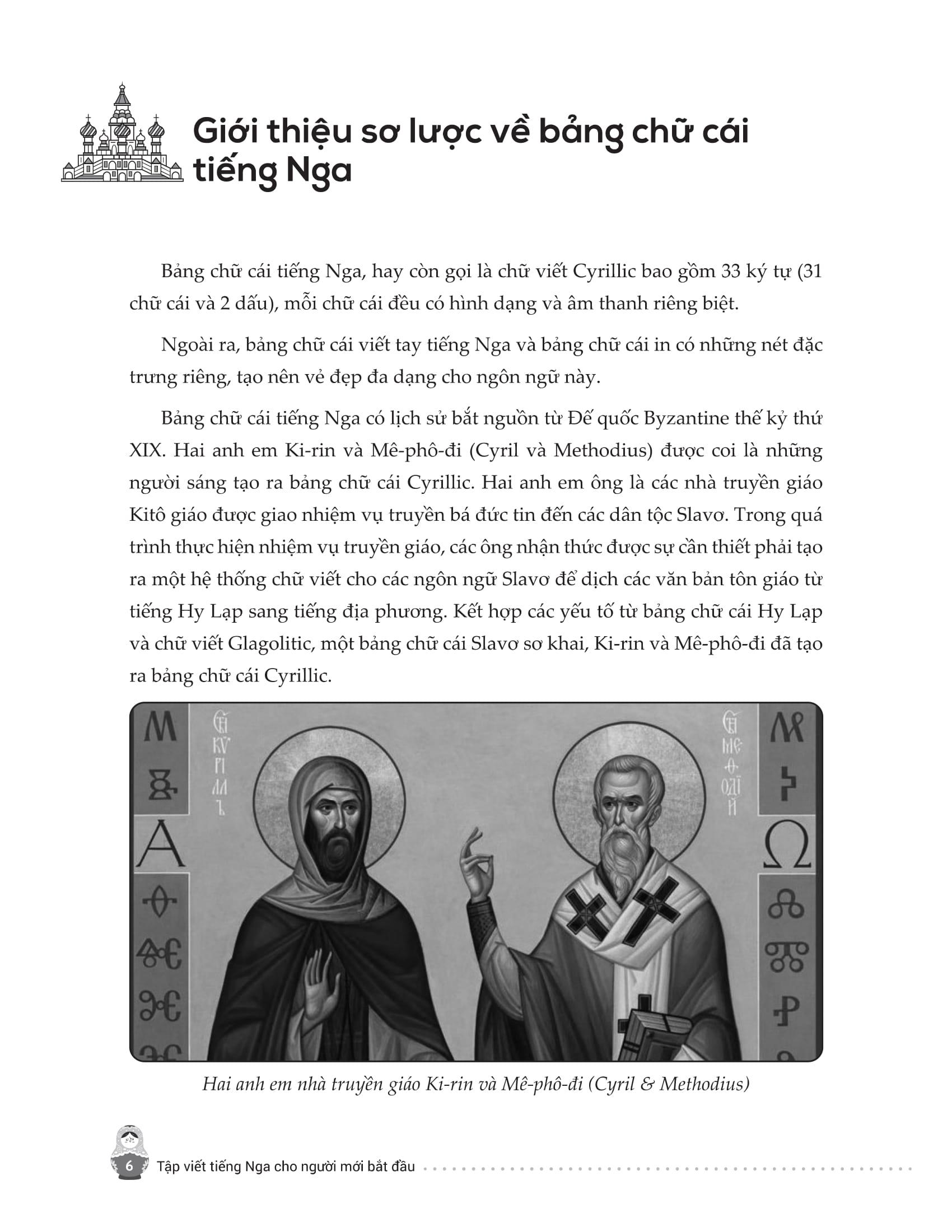 - Từ điển mini cuối sách giúp tra cứu và ghi nhớ từ vựng nhanh chóng. Trên đây là những nội dung nổi bật của cuốn sách mà chúng tôi muốn gửi đến bạn đọc – những ai đang bắt đầu hành trình chinh phục tiếng Nga từ những nét chữ đầu tiên. Hy vọng cuốn sách sẽ là người bạn đồng hành hữu ích, giúp bạn học dễ dàng, luyện viết hiệu quả và thêm yêu ngôn ngữ giàu văn hóa này. Chúc bạn học tốt và sớm đạt được mục tiêu của m.ình!
